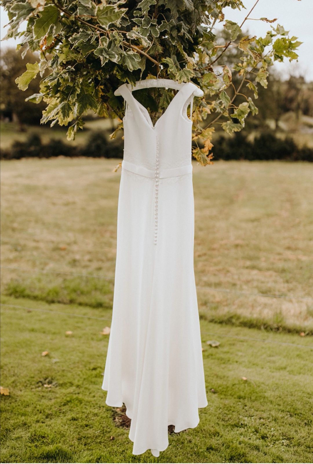 Simple but elegant! Satin band & lace across waist, button detail down the back as seen in pictures above.