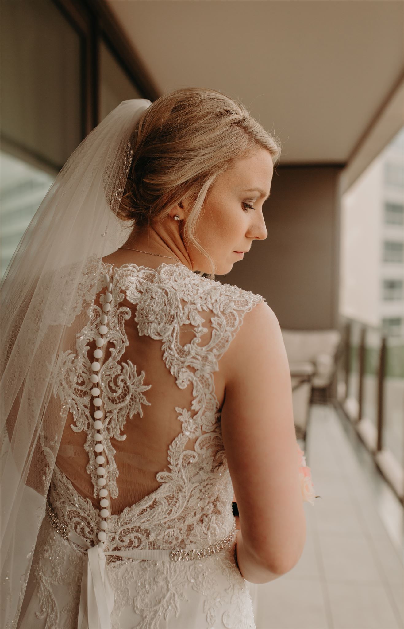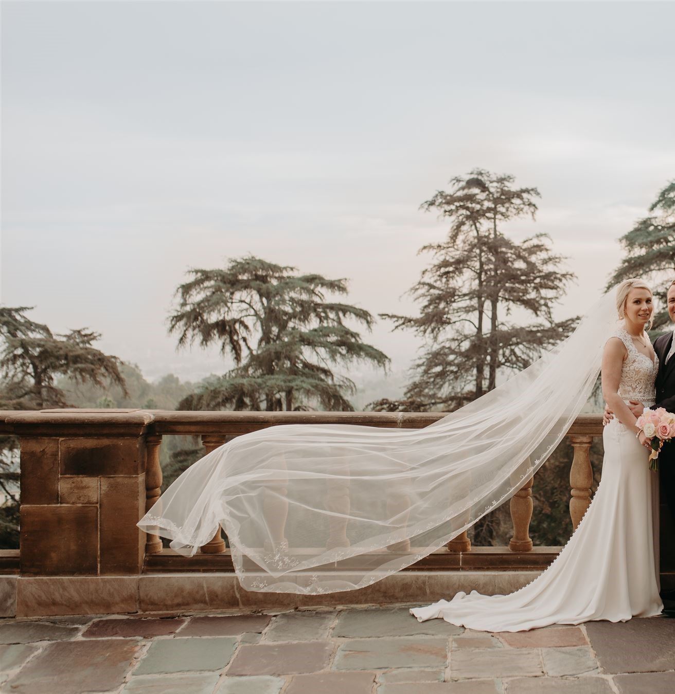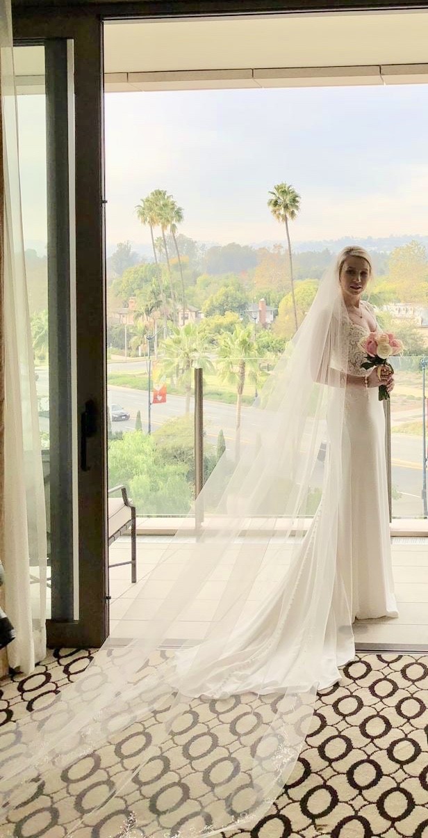 Exquisite veil included with the dress and have detailing all the way around the veil.