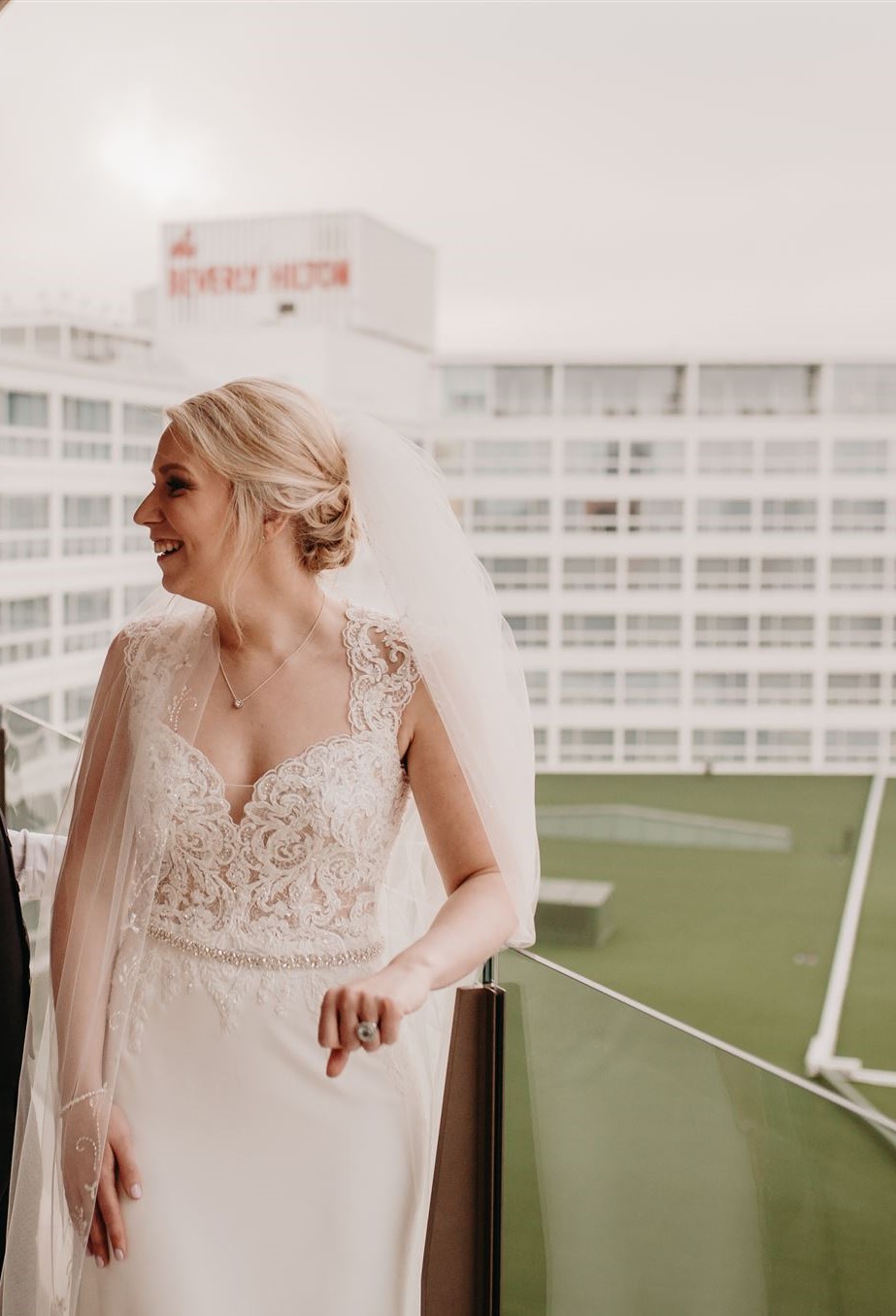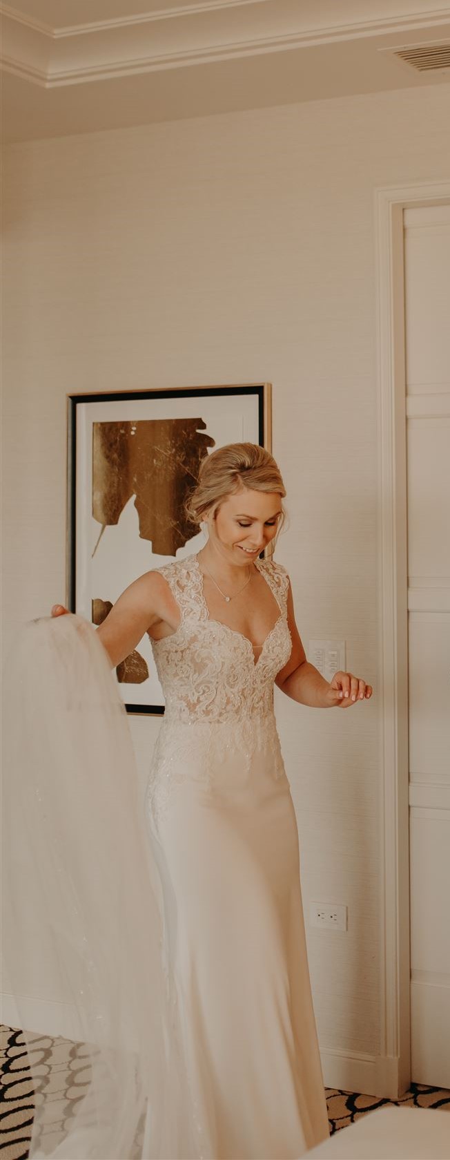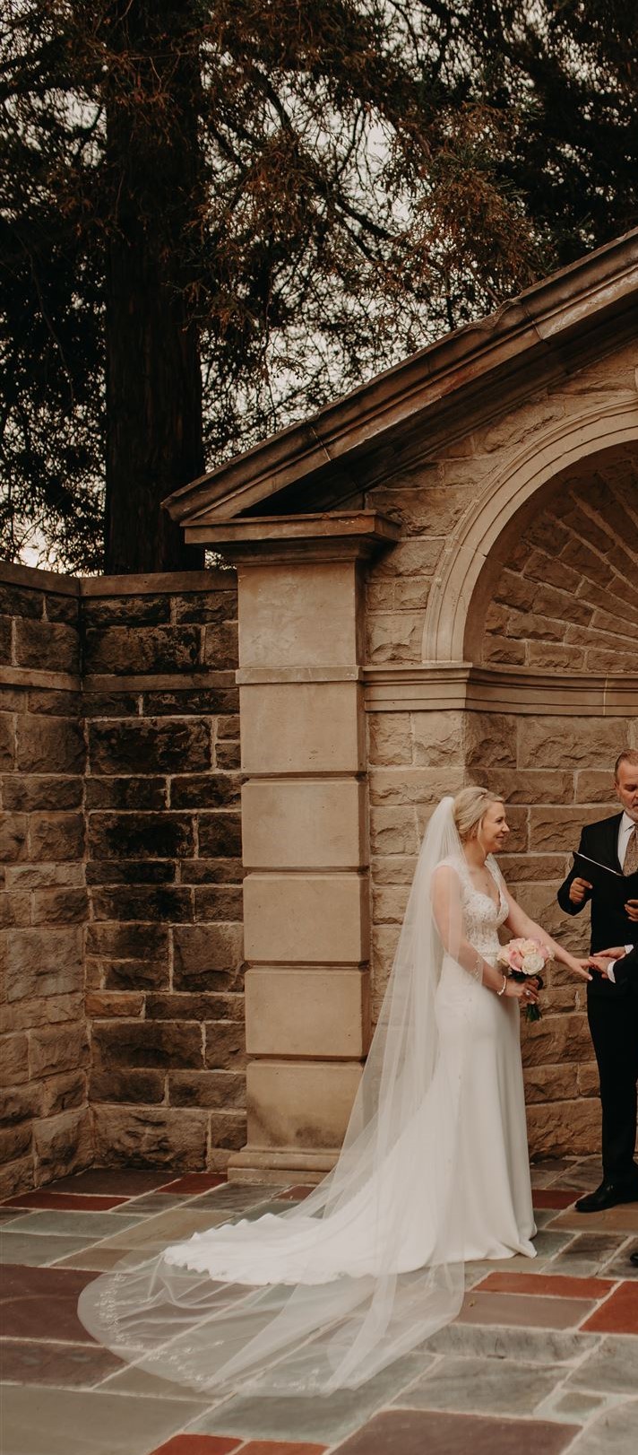Exquisite veil included with the dress and have detailing all the way around the veil.