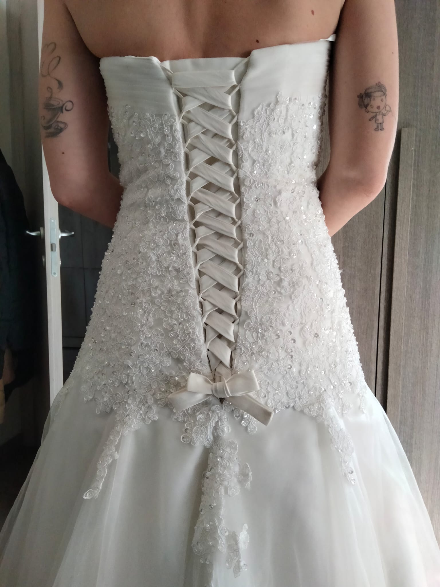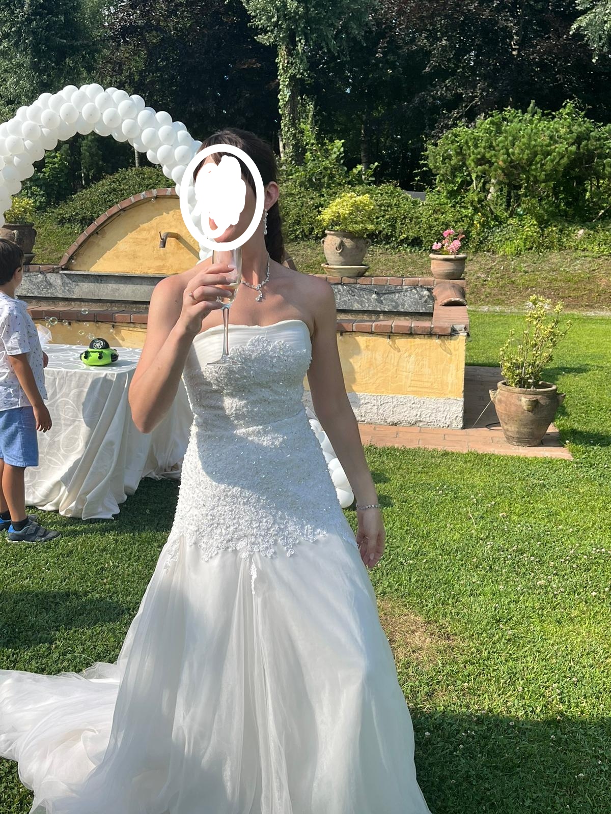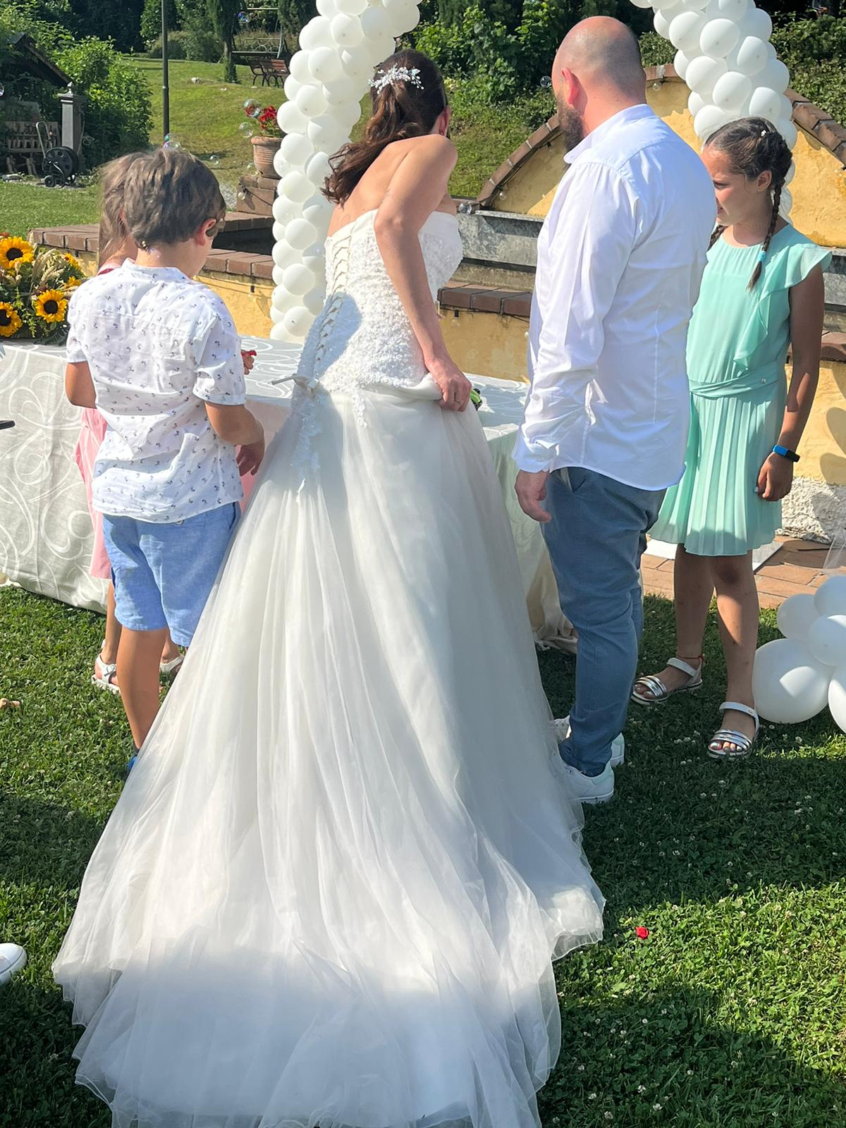 Mi sono sposata il 1 luglio 2023, l abito è in perfette condizioni, già lavato in lavanderia senza evidenti segni di usura. Con il ricavato farò la cameretta ai miei figli.
