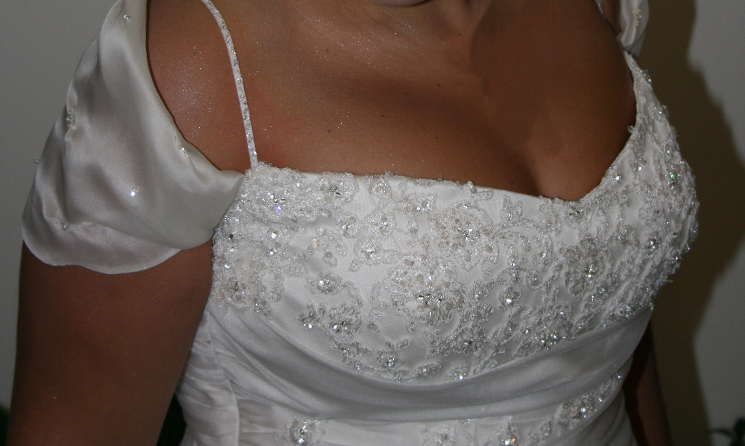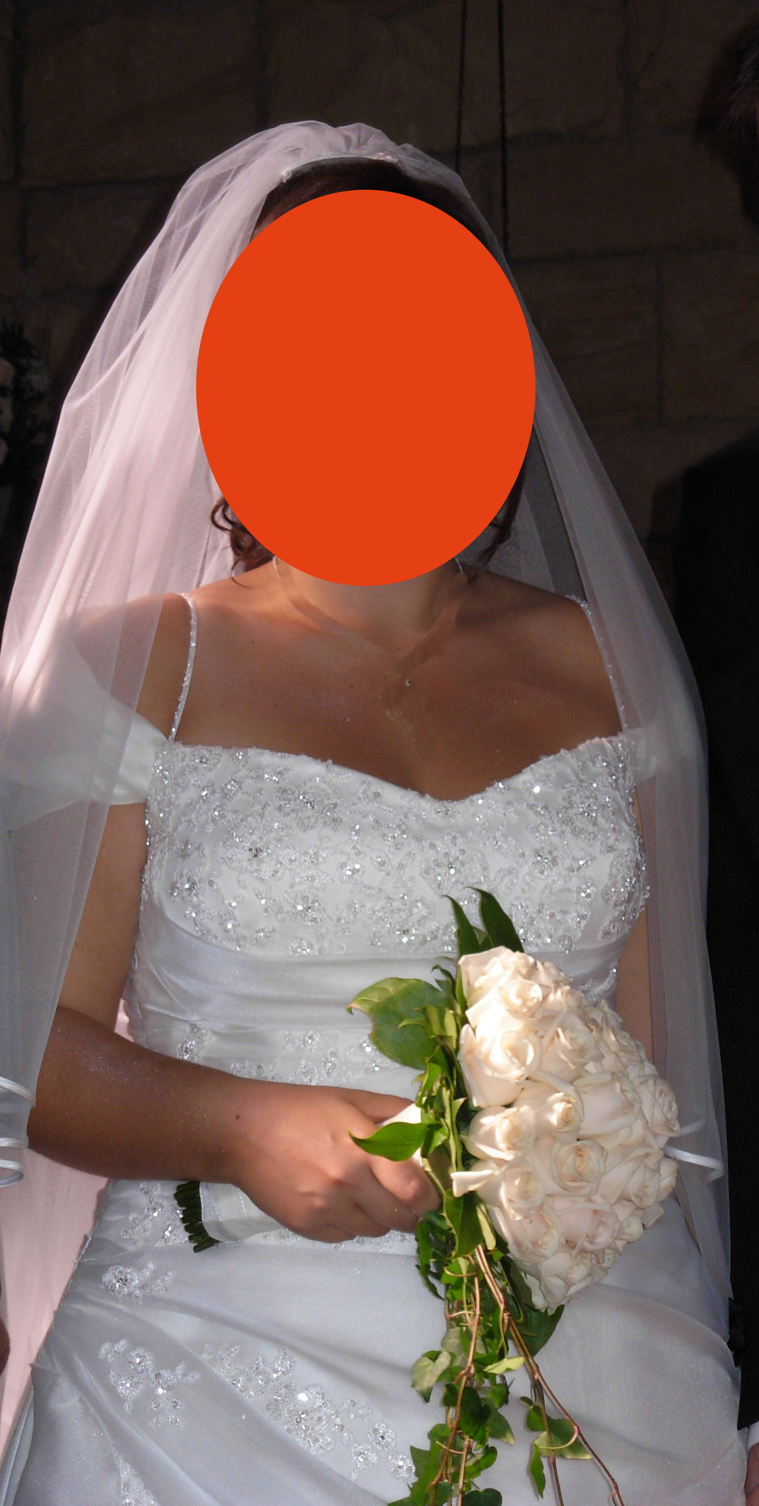 Abito da sposa bianco con scollo a cuore e ricami sul tutto il corpetto. insieme all’abito spedisco anche il velo.