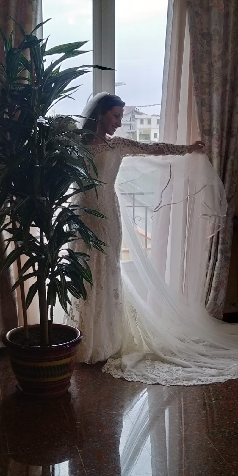 L’abito garantisce ed assicura l’eleganza, lo stile e la comodità della vestibilita . Comprensivo di velo e copri spalle.Sono garantiti successo e soddisfazione. Per maggiori dettagli contattatemi