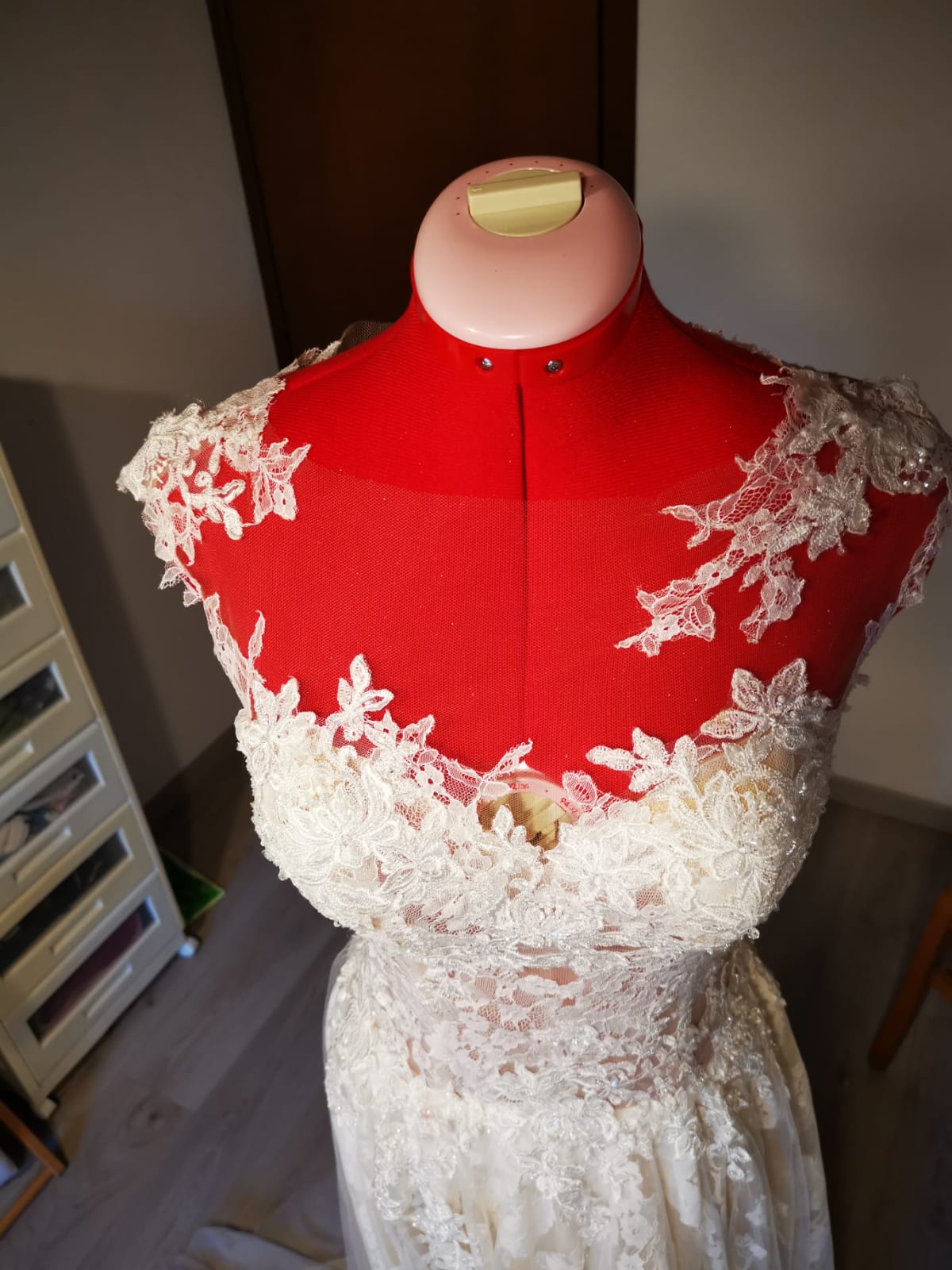 Bellissimo abito da sposa colore beige con riflessi rosa antico tg 38/40
