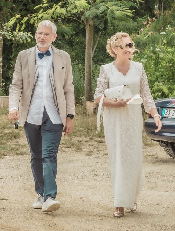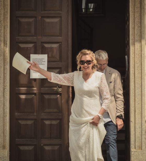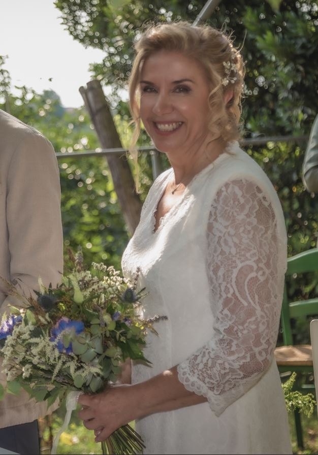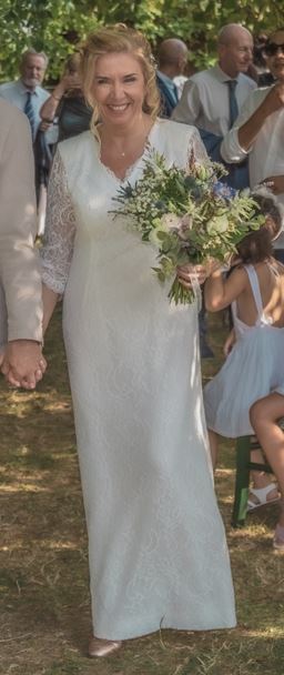 Splendido vestito da sposa in stile Boho Chic di alta sartoria Torinese fatto a mano, bianco avorio, linea svasata in pizzo leggerissimo realizzato con uno strato di georgette sotto il pizzo e uno di fodera foulard. Veste una 44-46 taglia italiana. Indossato a Luglio leggerissimo nonostante il caldo della giornata. Si presta all’utilizzo da Maggio a Settembre.