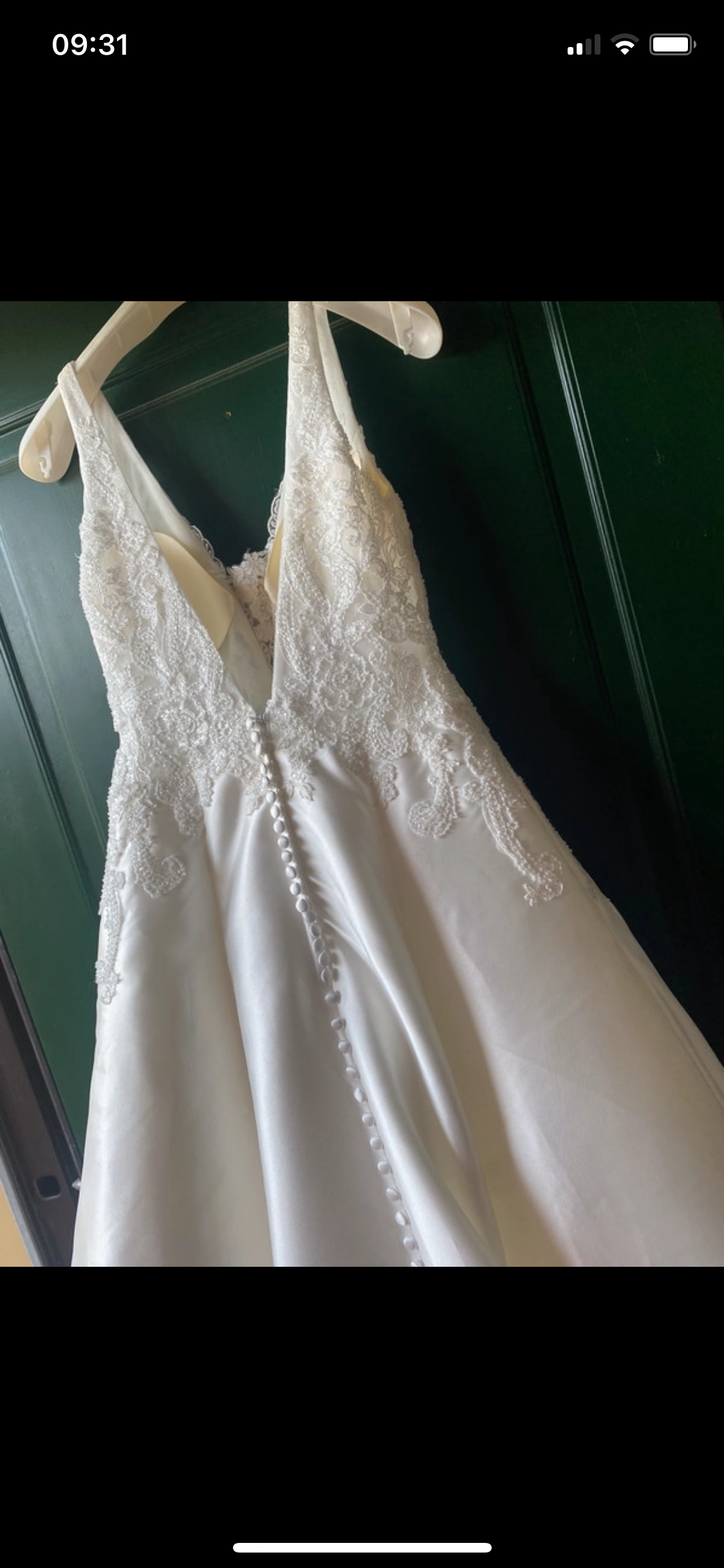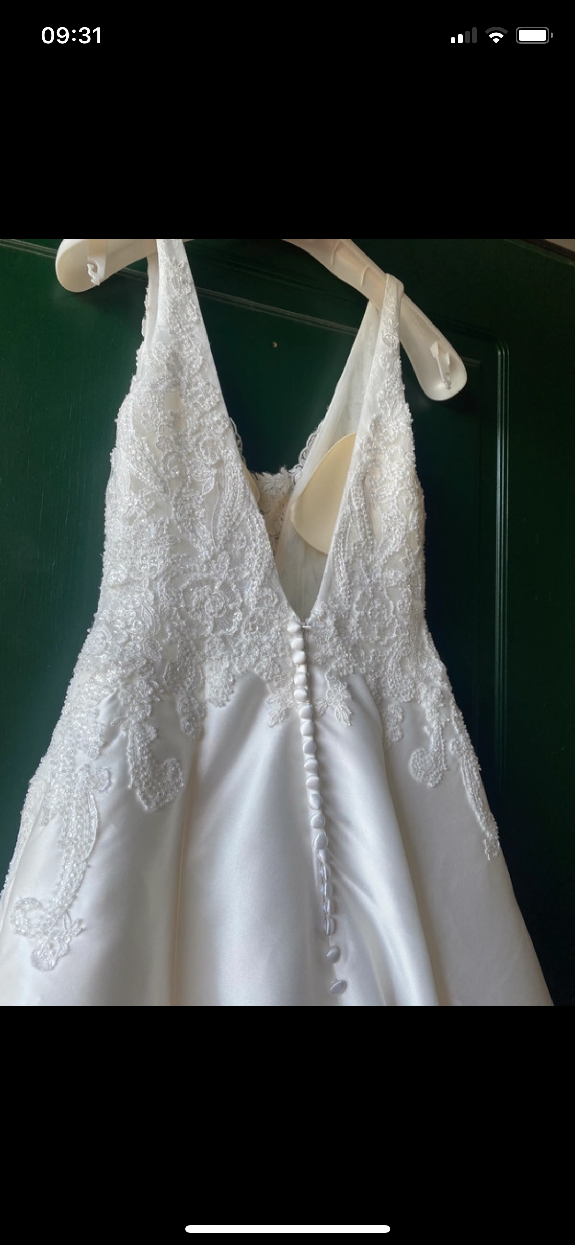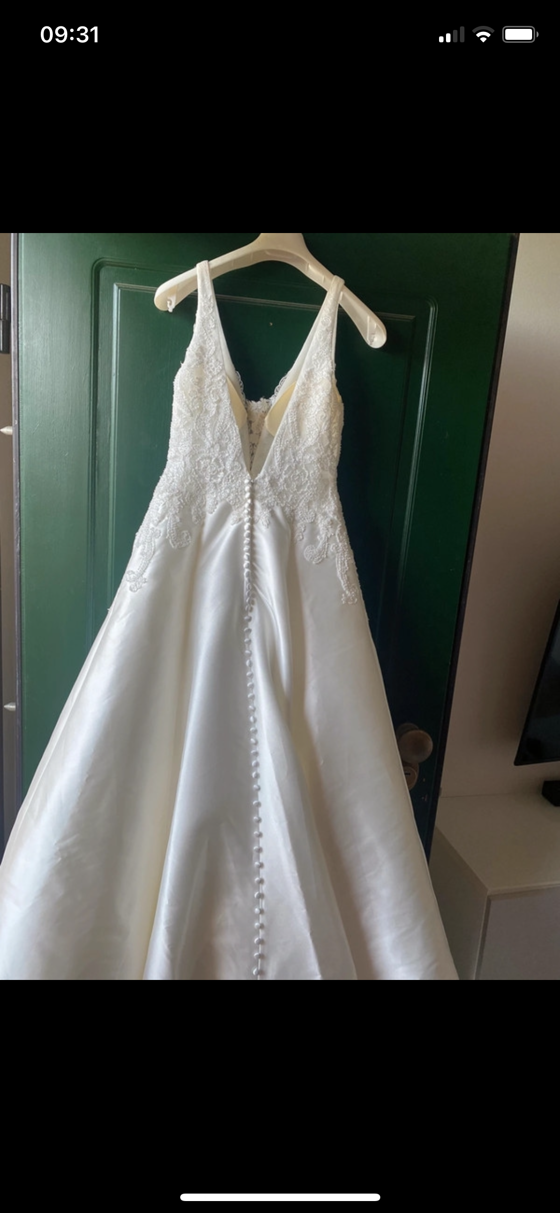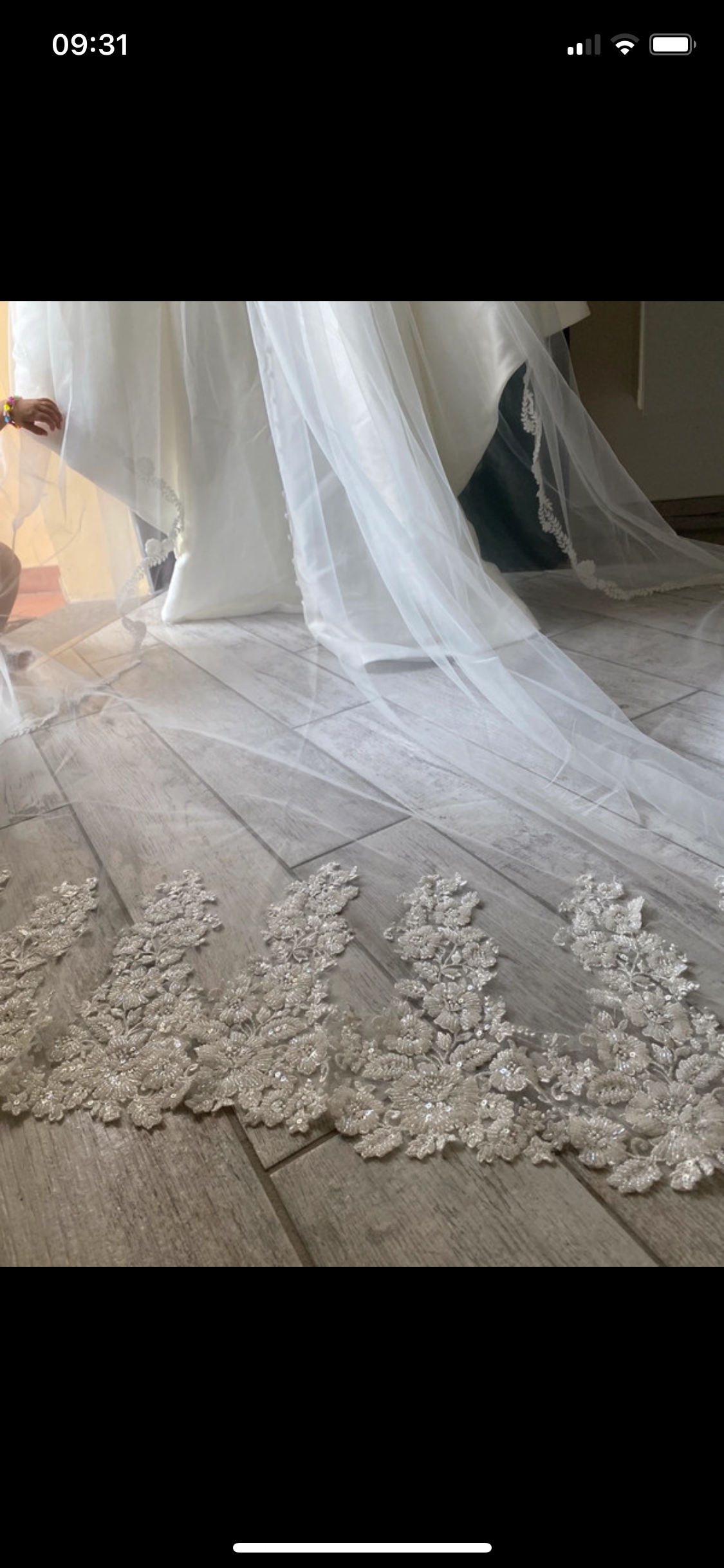 Vendo abito da sposa modello principessa con corpetto prezioso scollo a V e schiena scoperta accompagnata da piccoli bottoncini e gonna ampia compreso di velo ricamato.