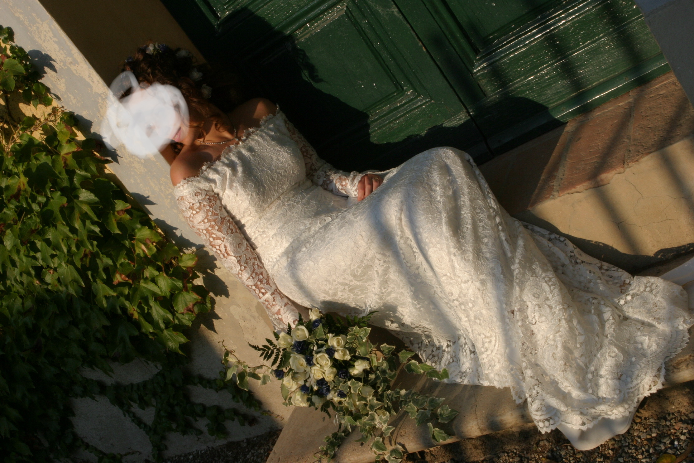 Bellissimo abito da sposa con stola, pezzo unico di fattura sartoriale. In perfette condizioni