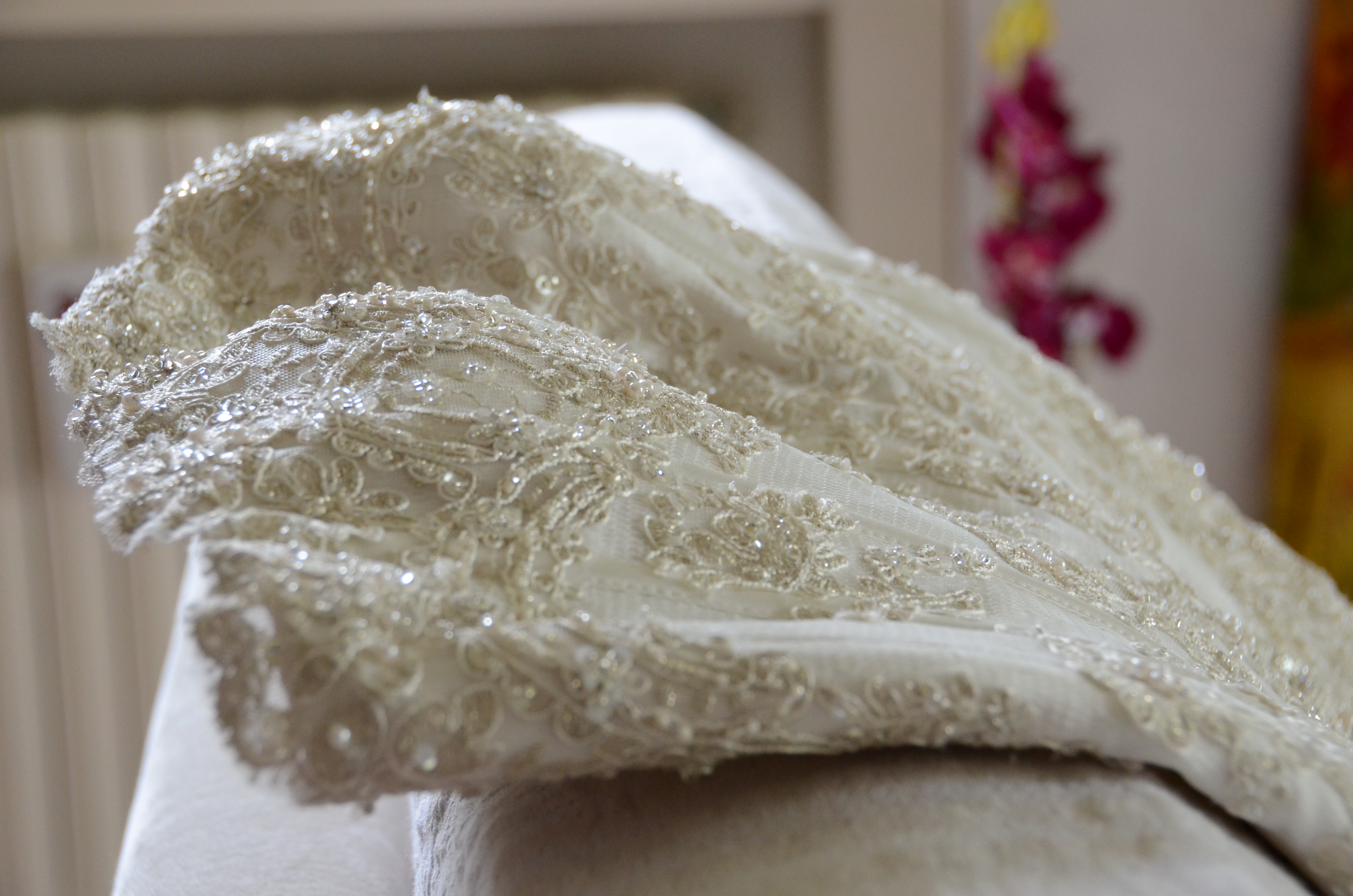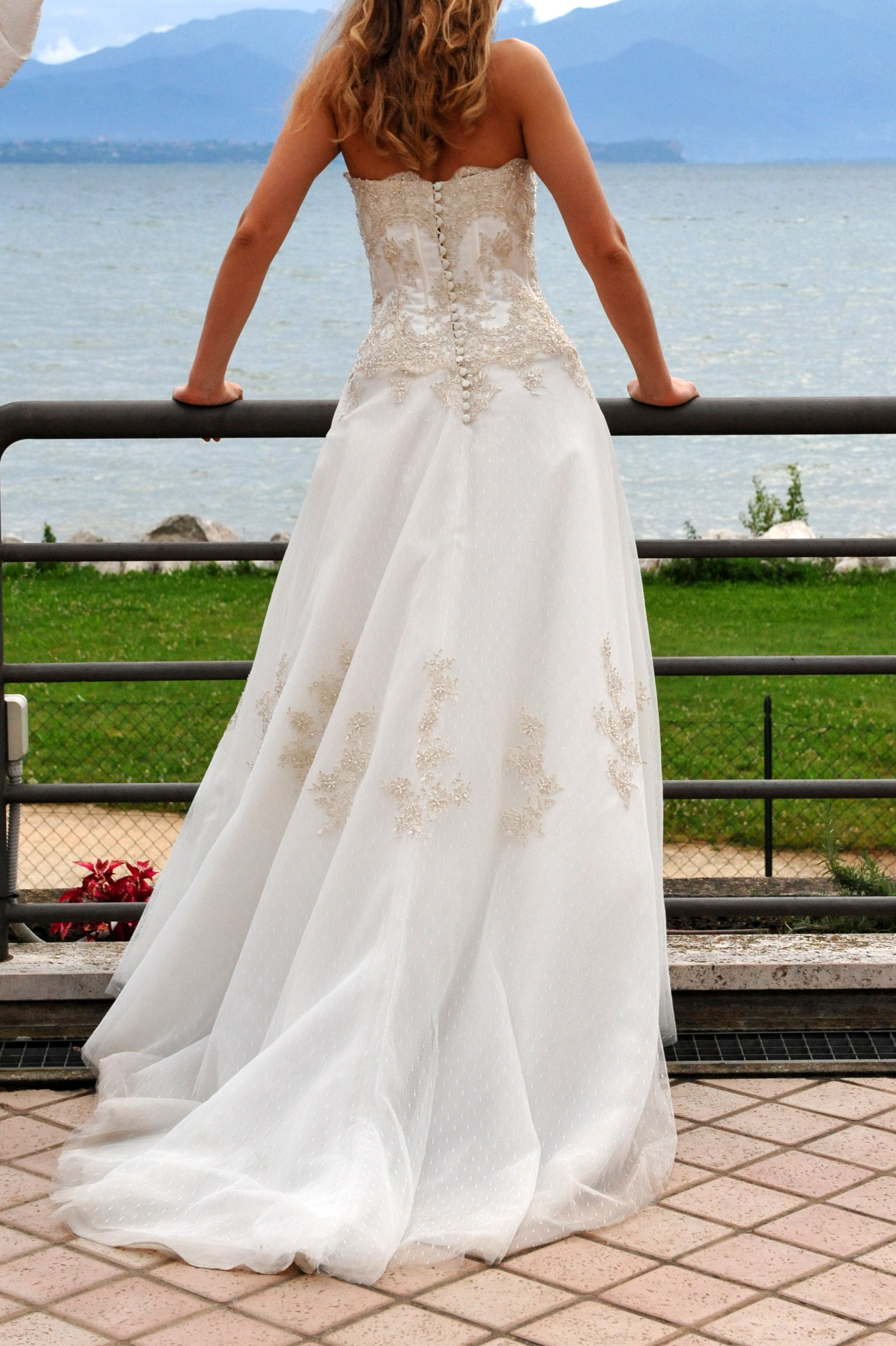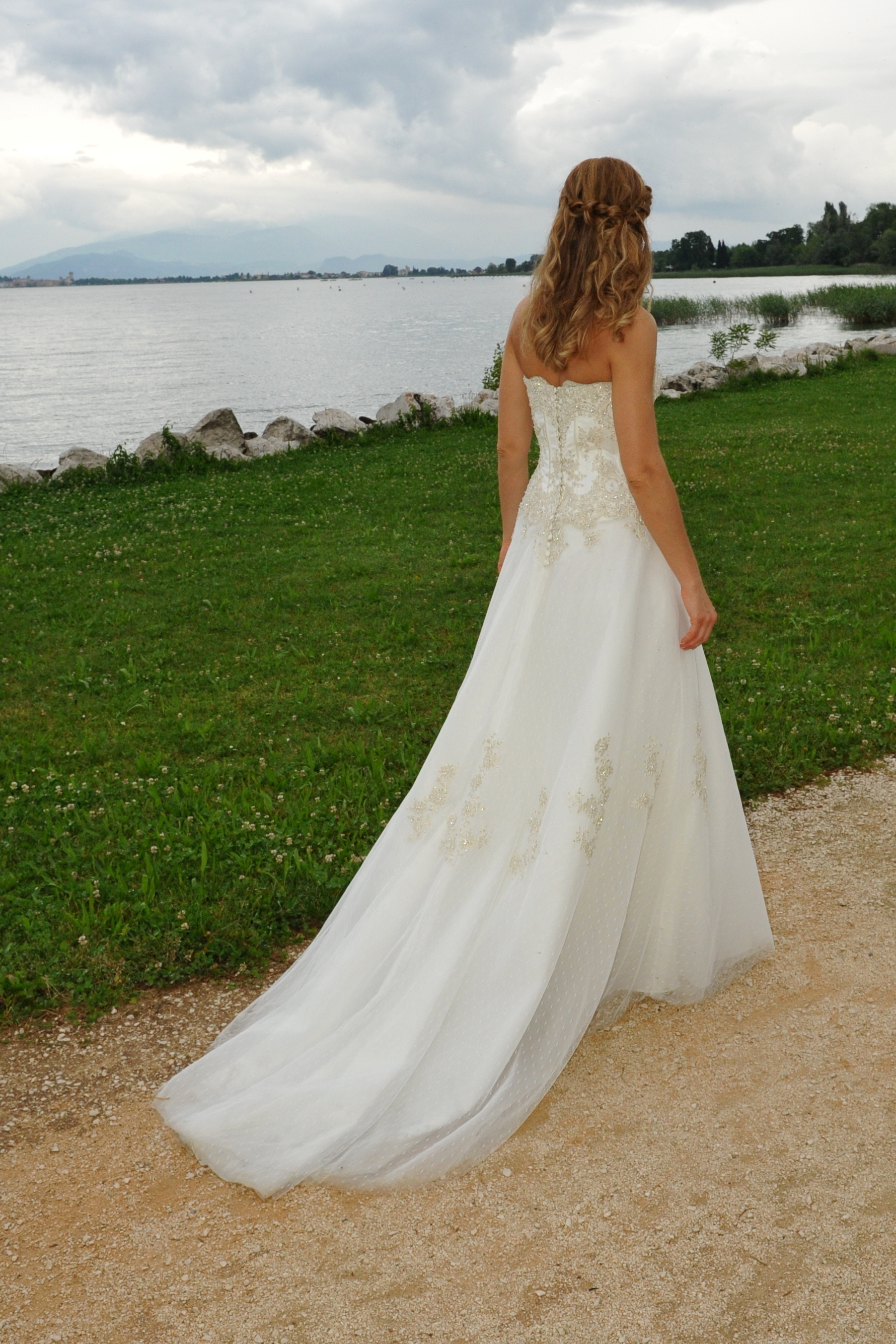 Vendo abito da sposa sartoriale in tulle tg. 42-44 con corpetto e gonna ricamati a mano.