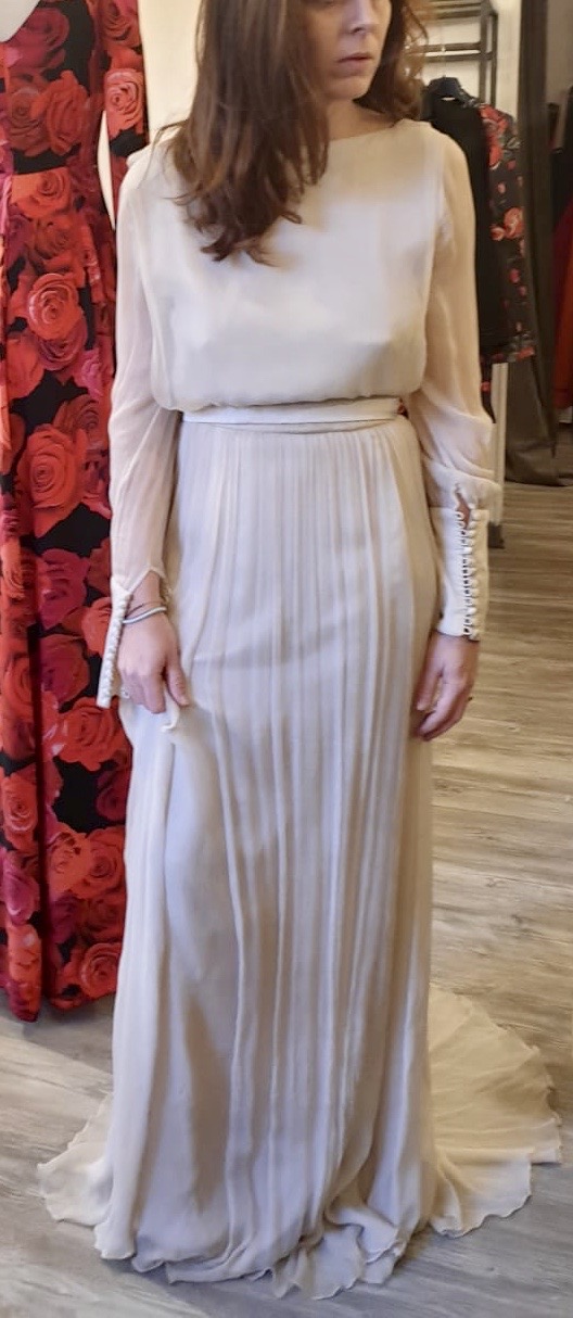 L’abito è stato comprato prima del Covid 19 per un matrimonio che si doveva celebrare in primavera. Ora la sposa vuole cambiare completamente stile e colore.