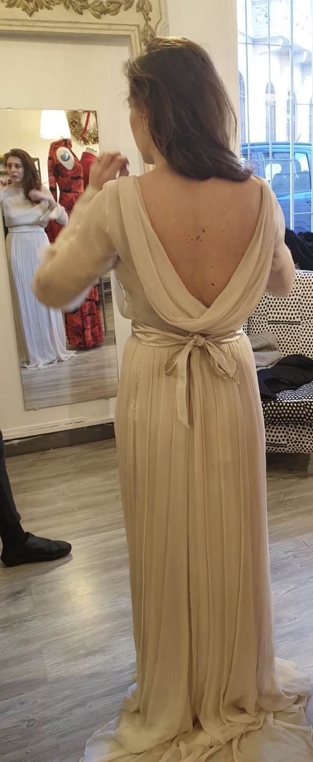 Ovviamente l’abito non è mai stato indossato, è uscito dall’atelier ed è rimasto nella sua custodia dal mese di novembre a oggi.