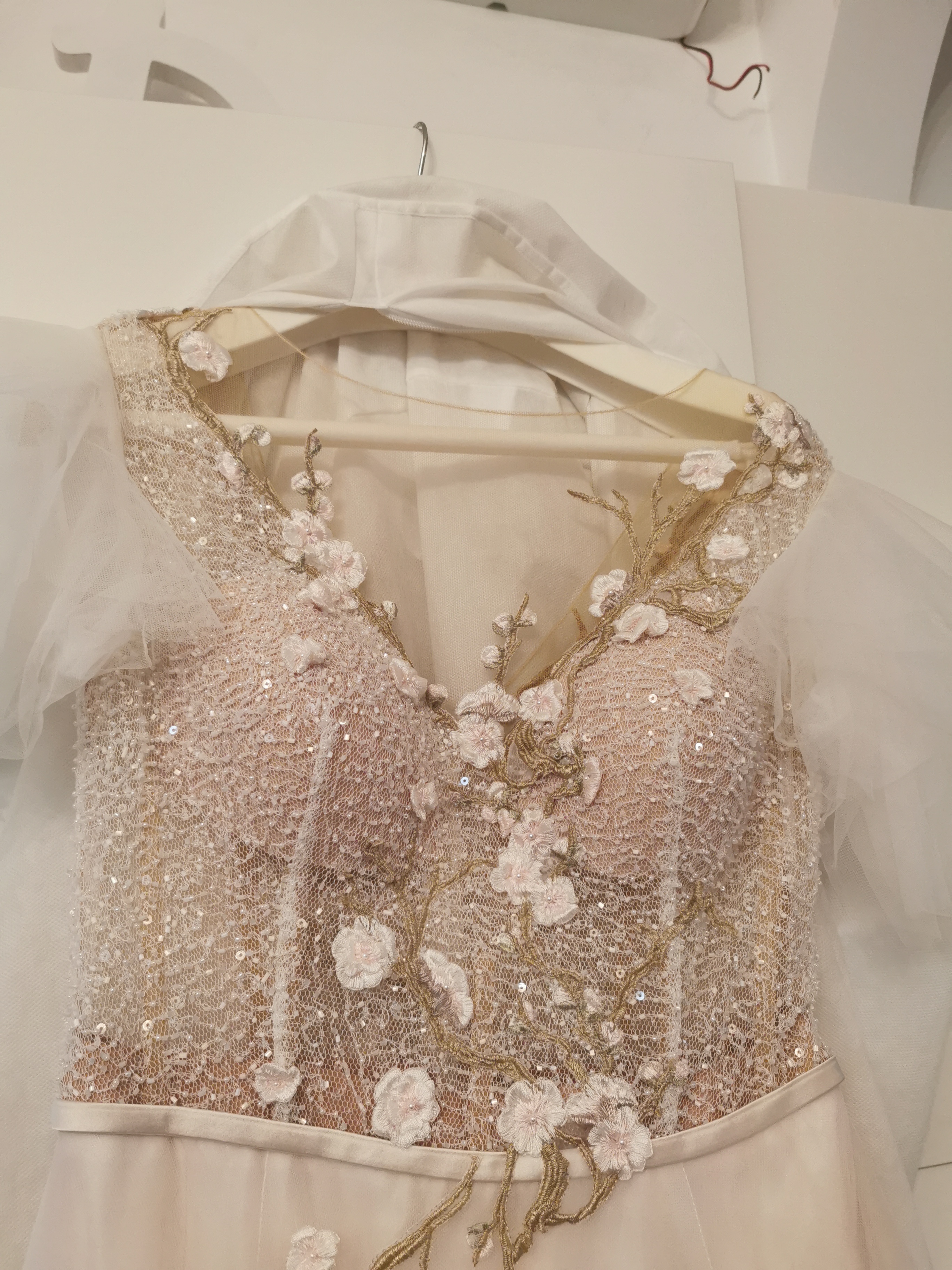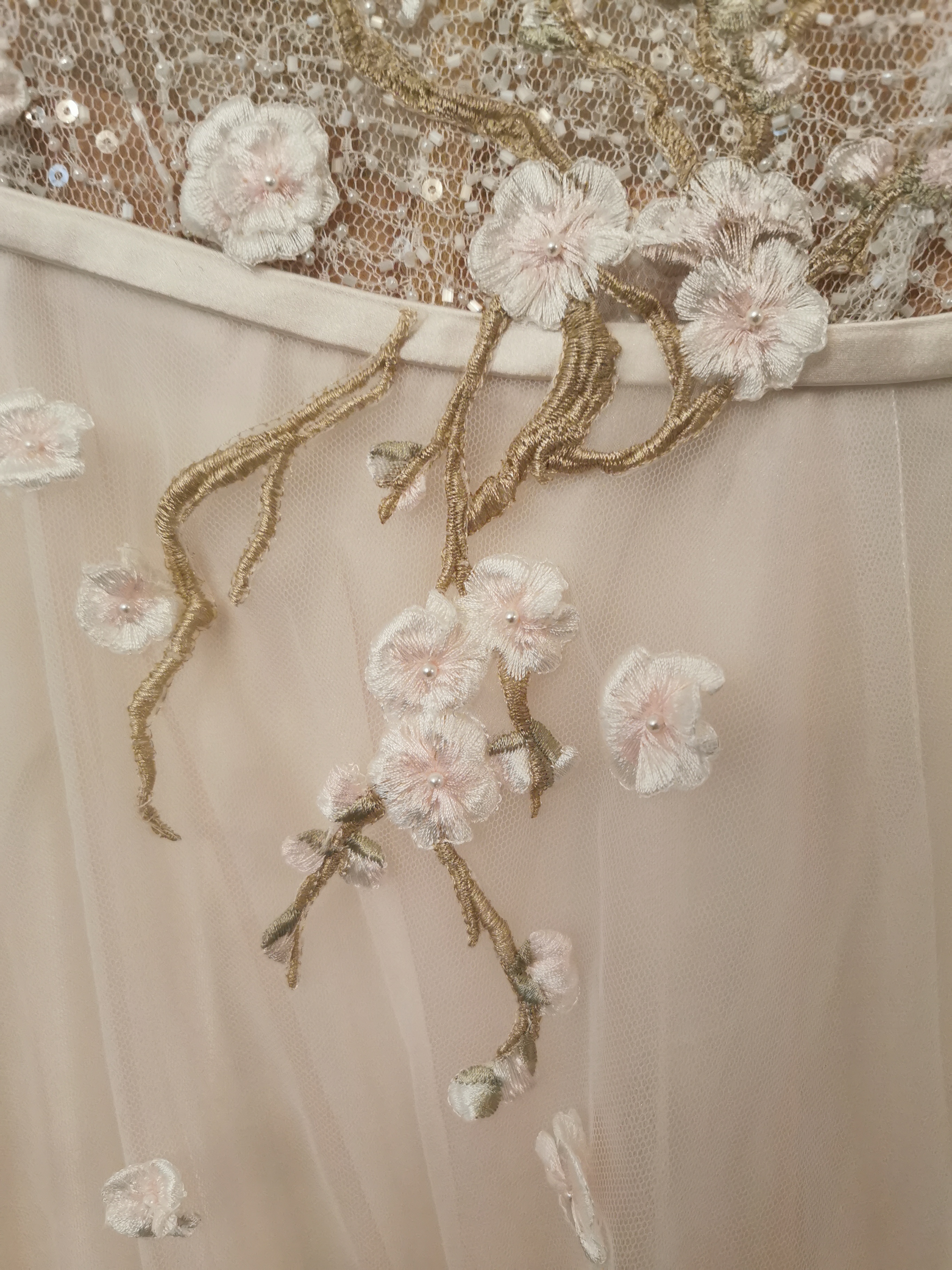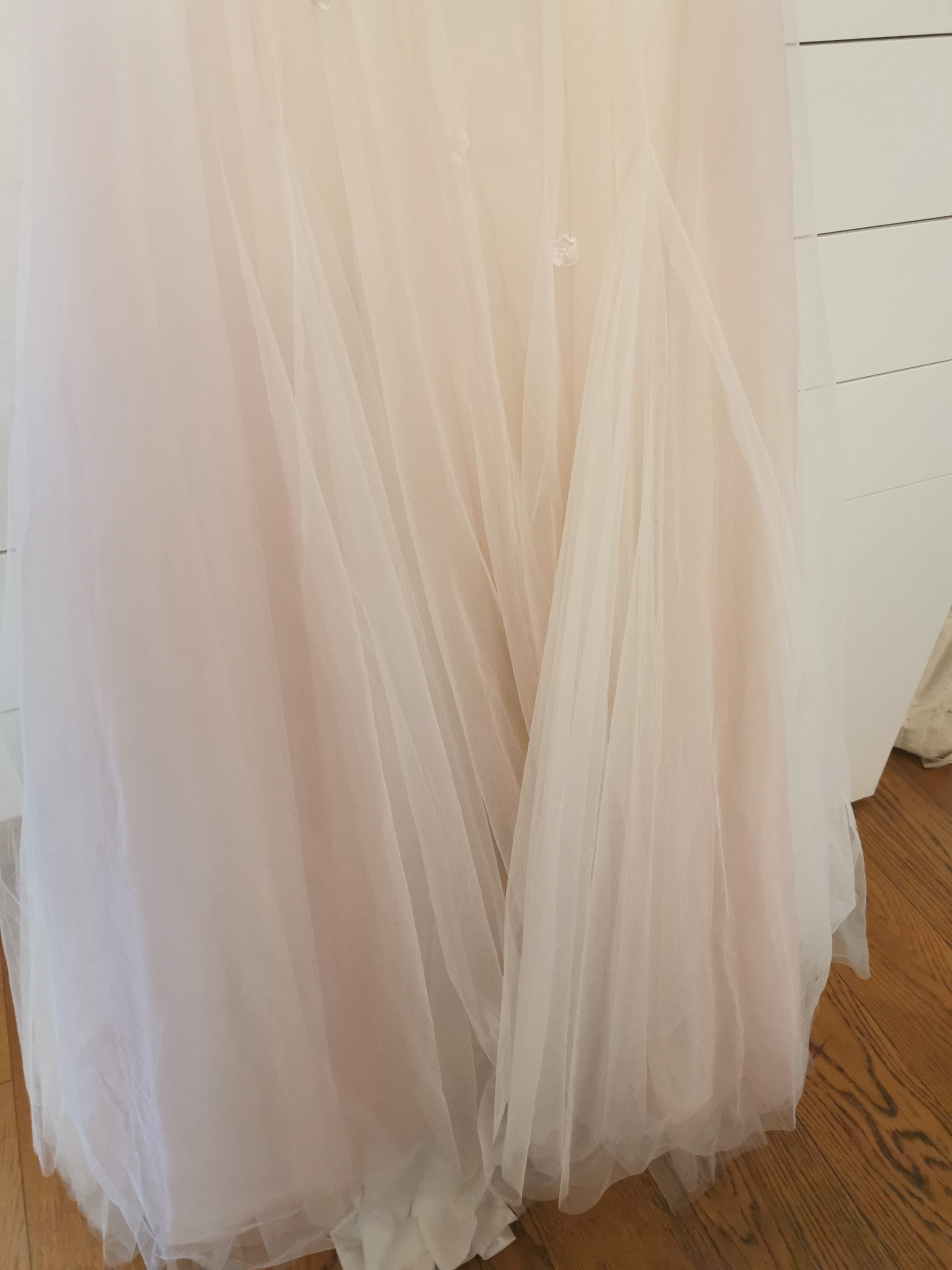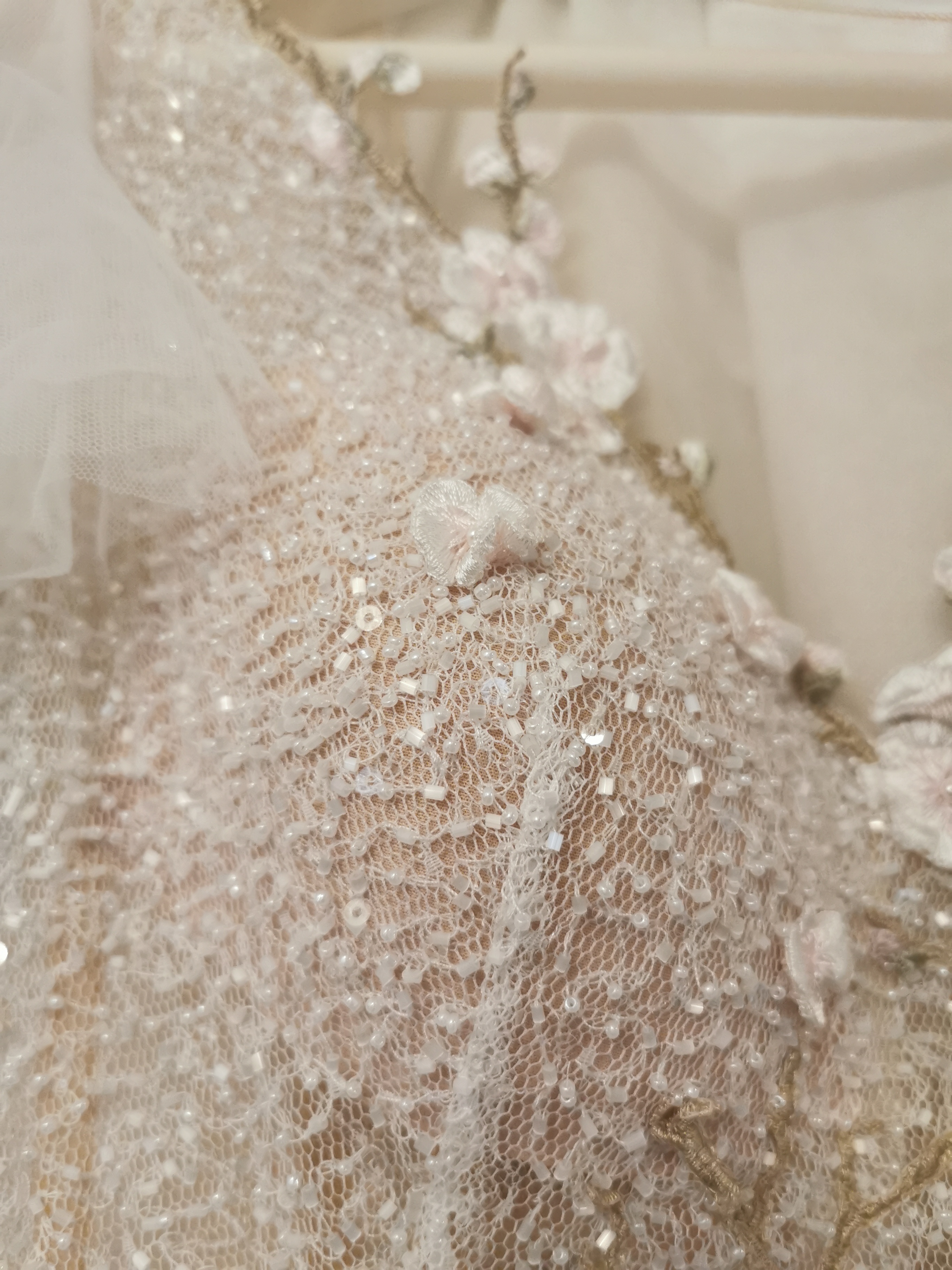 Vendo il mio splendido abito da sposa, come nuovo già lavato in tintoria. L’abito presenta un corpino ricamato con fiori e perline, tagliato in vita e gonna ampia in tulle doppio strato bianco e rosa cipria. Taglia 42/44 veste fino a una 46 asciutta. Orlo preso su una figura alta 1.60 con tacco 10. Bellissimo abito di grande effetto, leggero e confortevole da indossare nonostante lo strascico. Vendo anche sottogonna con cerchio utile per agevolare la camminata.