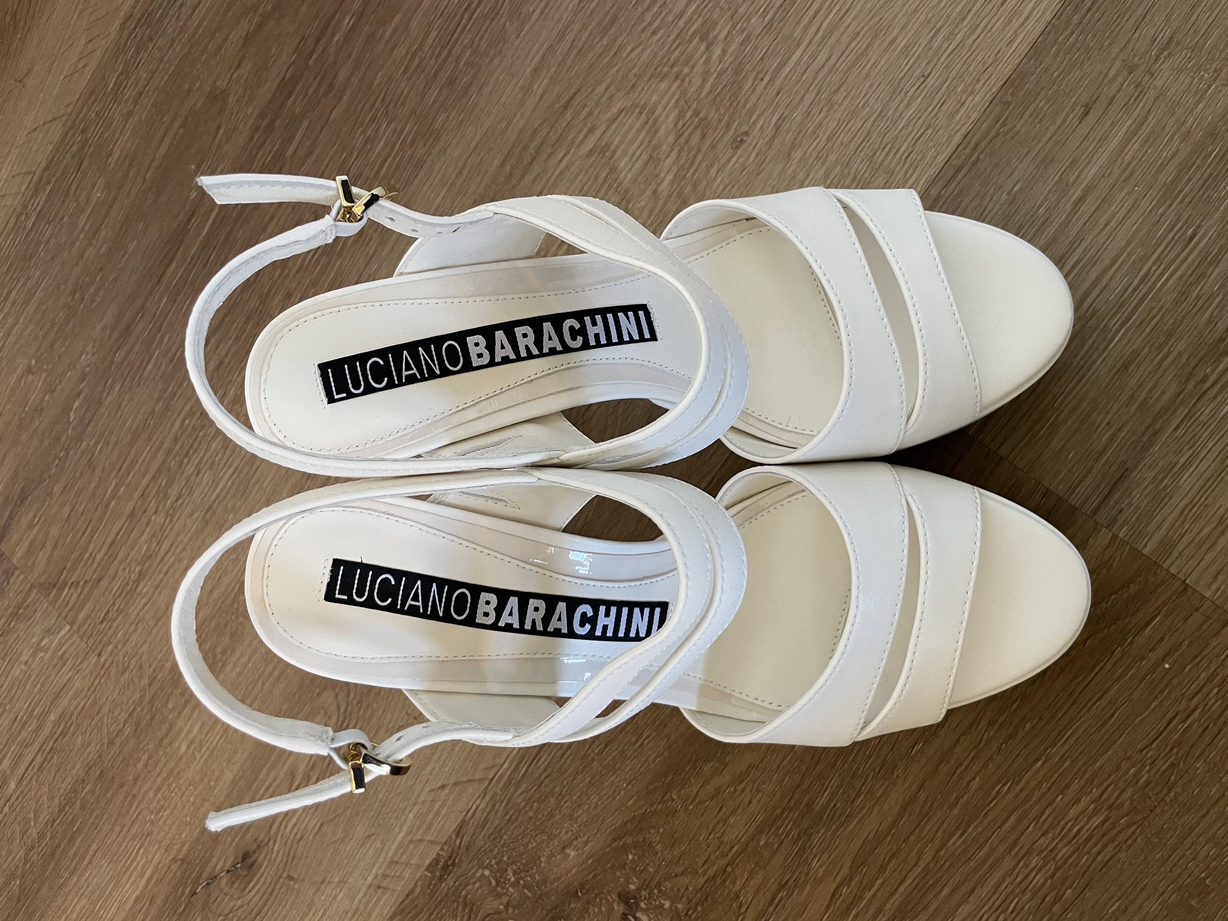 IN REGALO: sandali avorio tacco 10cm by Luciano Barachini NUOVI vera pelle , con scatola e sacchetto porta scarpe