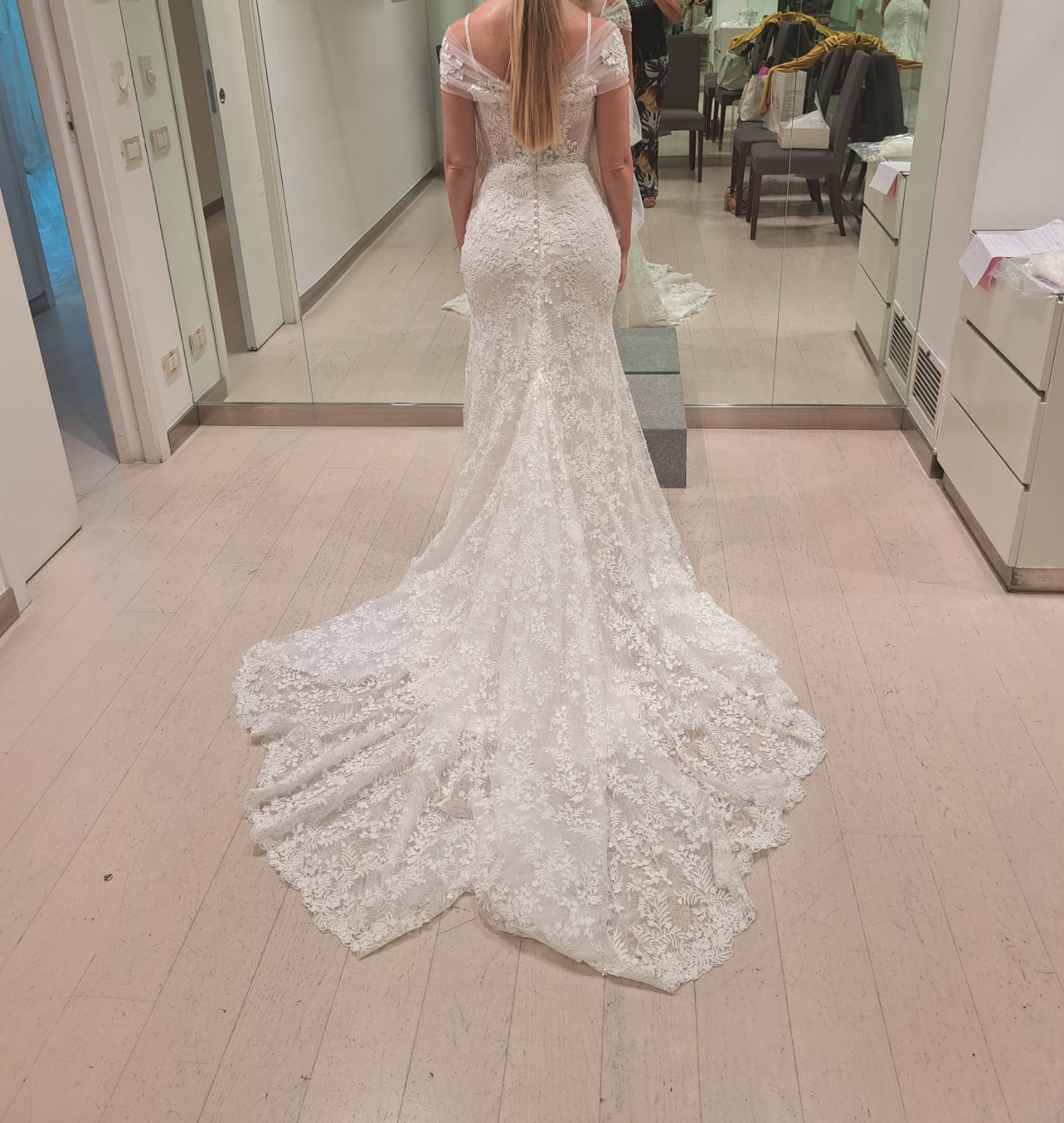 Vendo abito da sposa a sirena usato, come nuovo e non rovinato, con scollo a cuore in merletto e pizzo chantilly