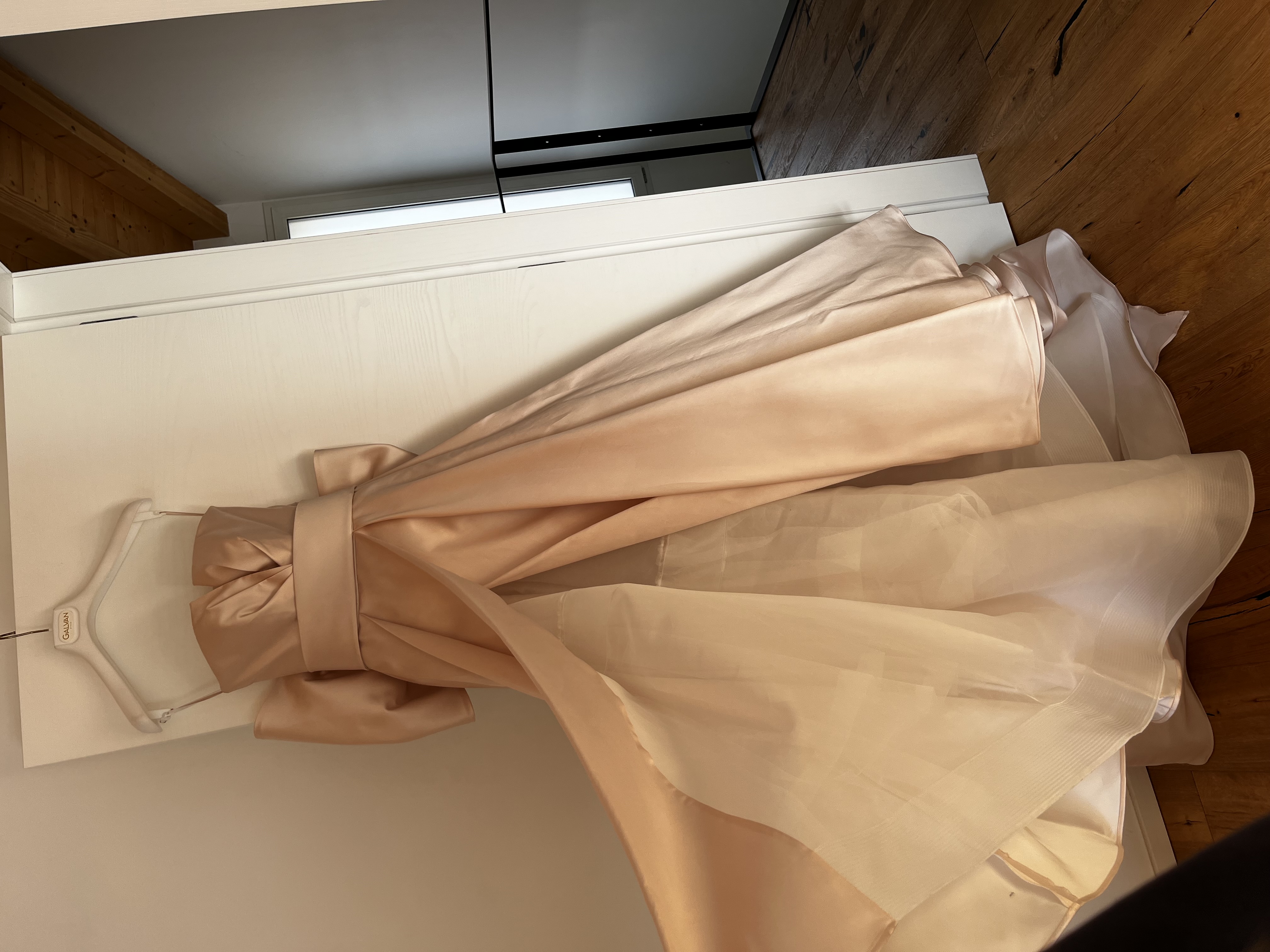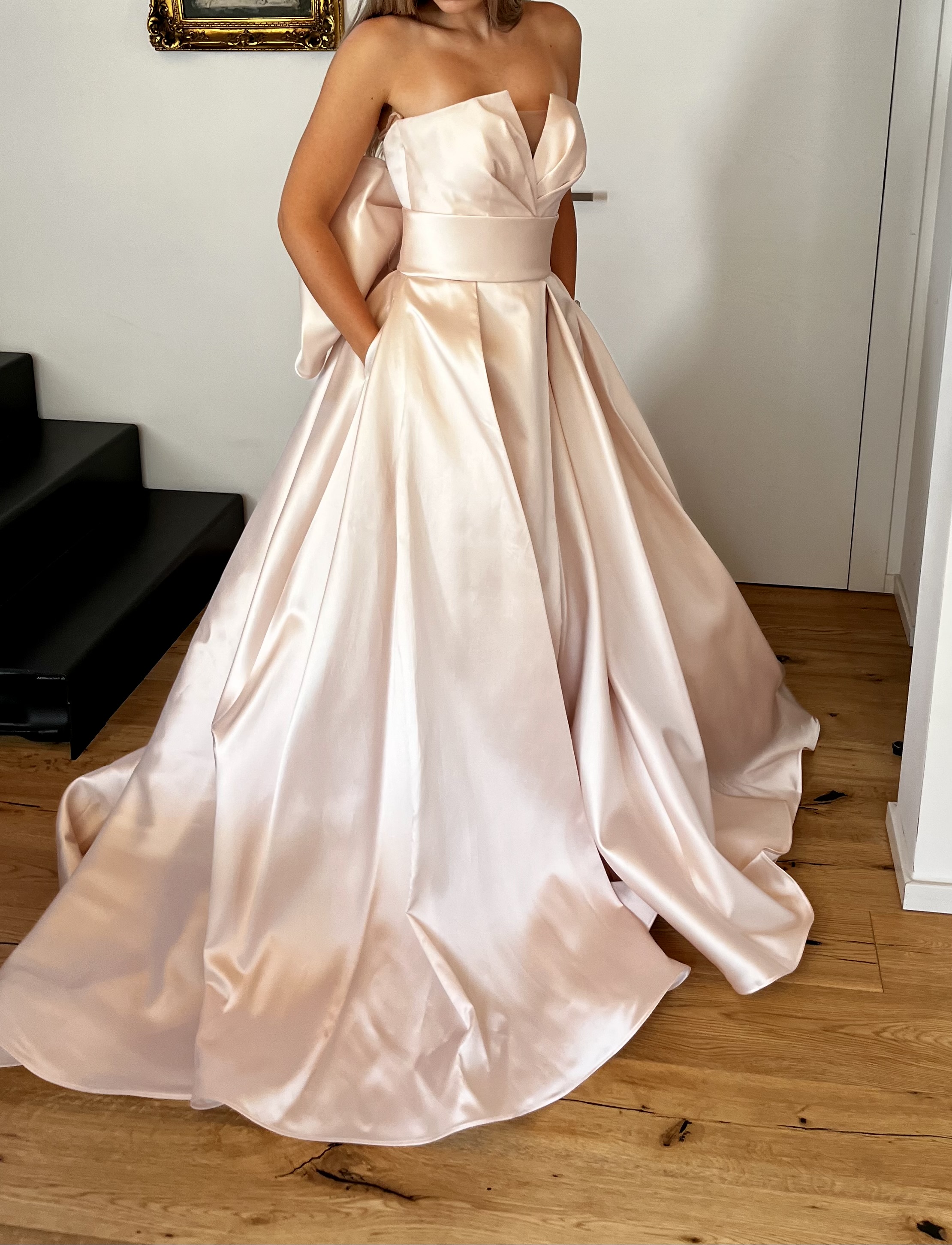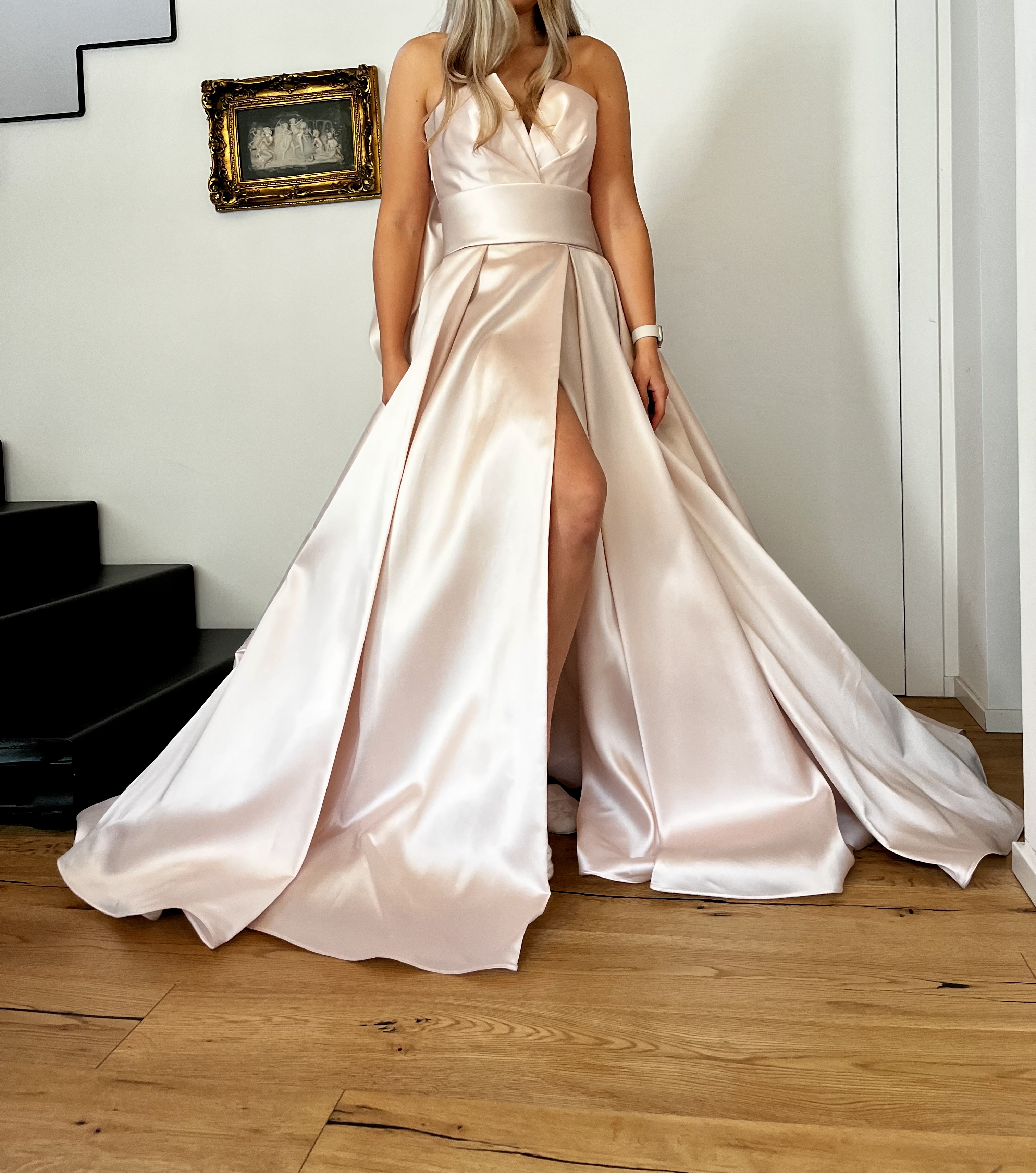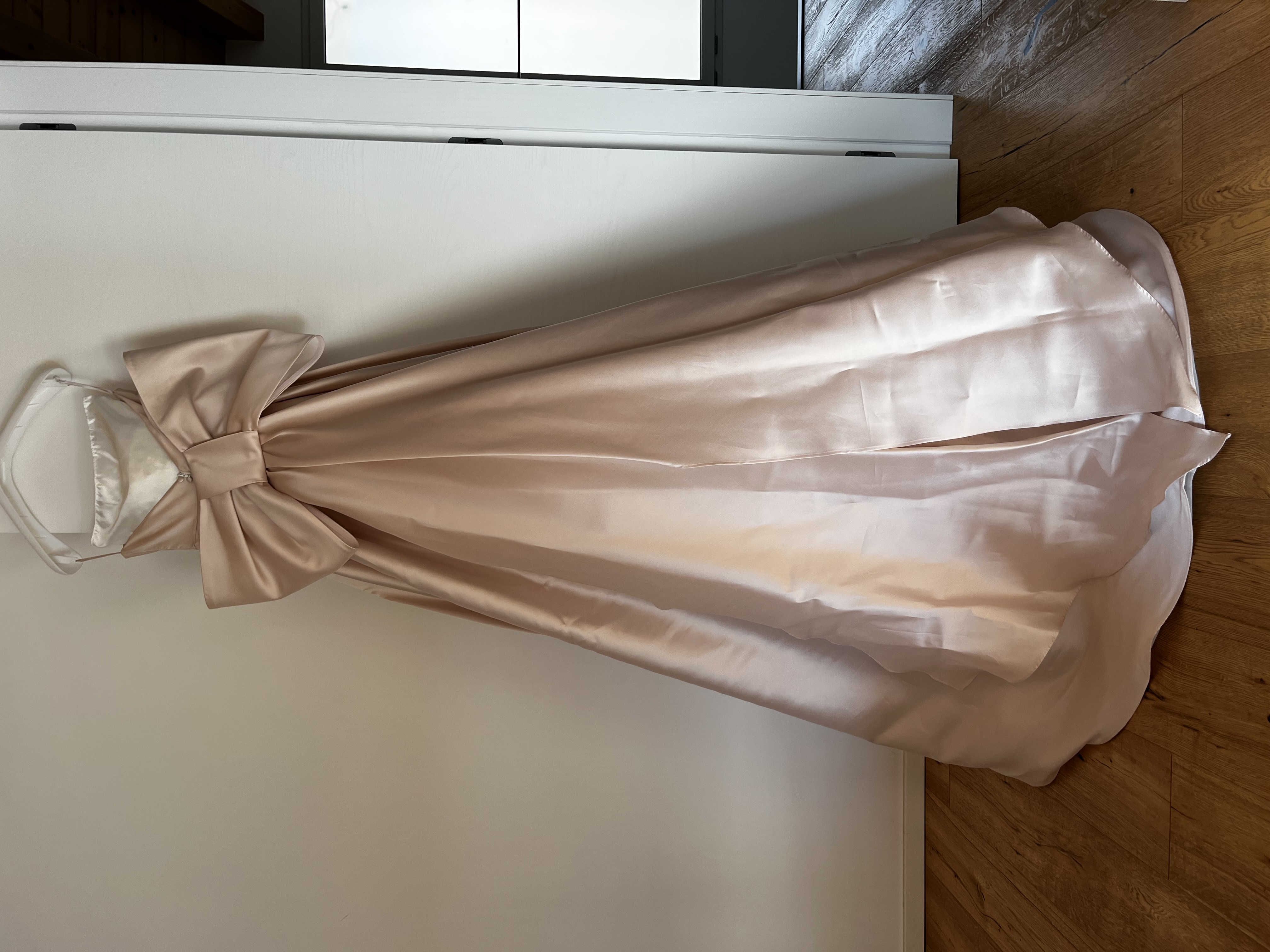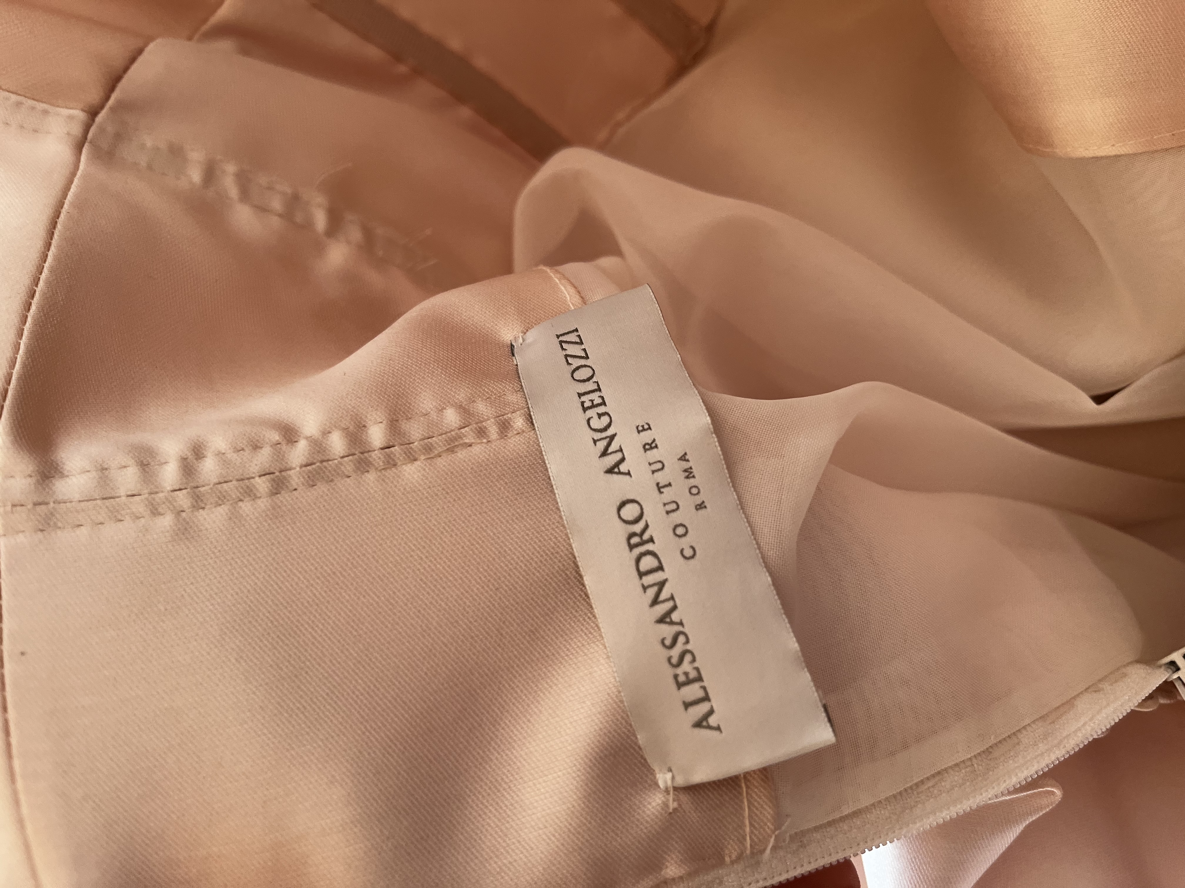 Abito iconico Quarzo Rosa dello stilista Alessandro Angelozzi Couture. L’abito non é mai stato indossato, condizioni perfette (se vedete qualche stropicciatura é dovuta alla conservazione nella propria sacca). L’abito é interamente in seta rosa cipria, taglia 42. Presenta uno spacco sul davanti, tasche, un fiocco rosa sul retro, ed una corpetto semi arricciato. Vendo per cambio drastico di location. L’abito é stato ritirato dall’Atelier recentemente, perciò il modello é attualmente disponibile.