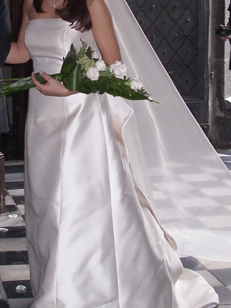 Bellissimo abito da sposa in mikado firmato Antonio Riva.