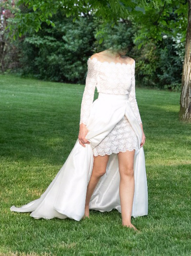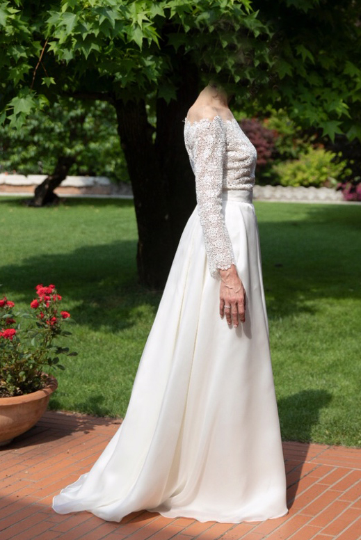 Vendo abito da sposa “Atelier Emé” mod. Lara, collezione 2020. Tg. 40/42, colore bianco avorio, composto da abito tubino in pizzo, gonna in organza (girovita e altezza adattabili su misura) e giacchino in raso. Indossato una sola volta. Già lavato e sanificato in lavanderia. Tenuto in perfette condizioni. No spedizione. Solo ritiro a mano. Prezzo trattabile e pagamento in contanti o tramite bonifico. No perditempo grazie.