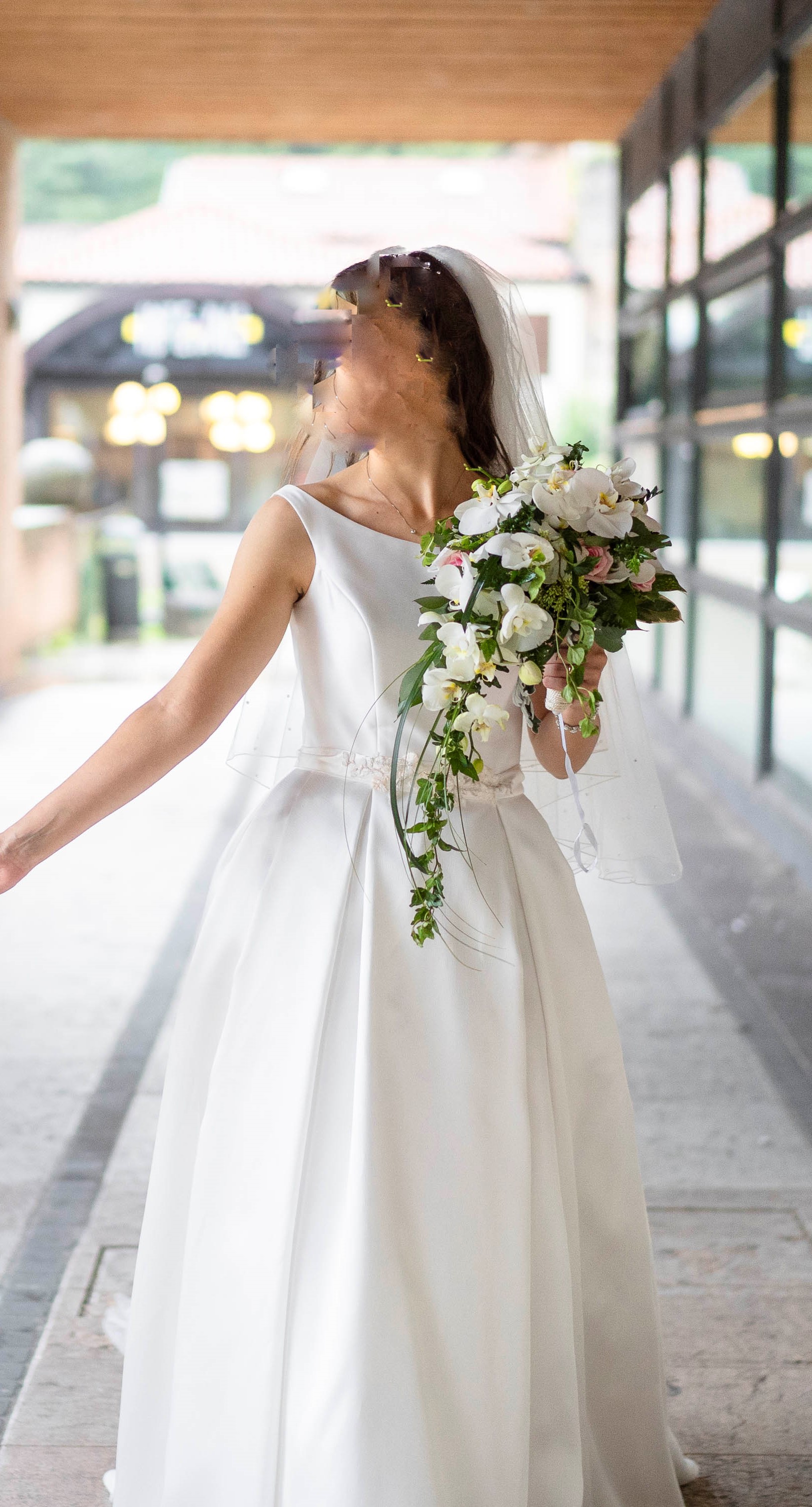 Abito vendibile anche separatamente dal velo. L’abito è stato pulito, disinfettato e stirato in lavanderia specializzata.