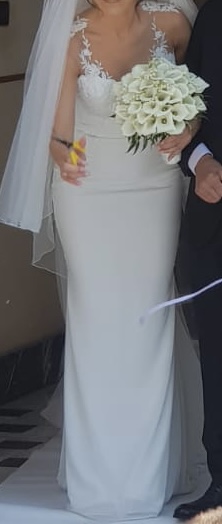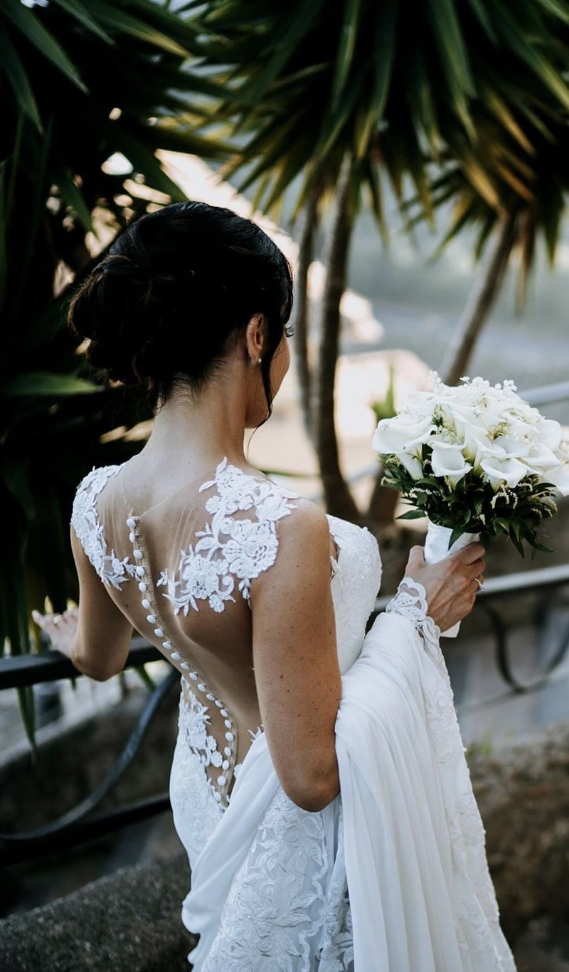 Abito interamente sartoriale, creato ad hoc per la sposa. Il tessuto è Cady di seta.