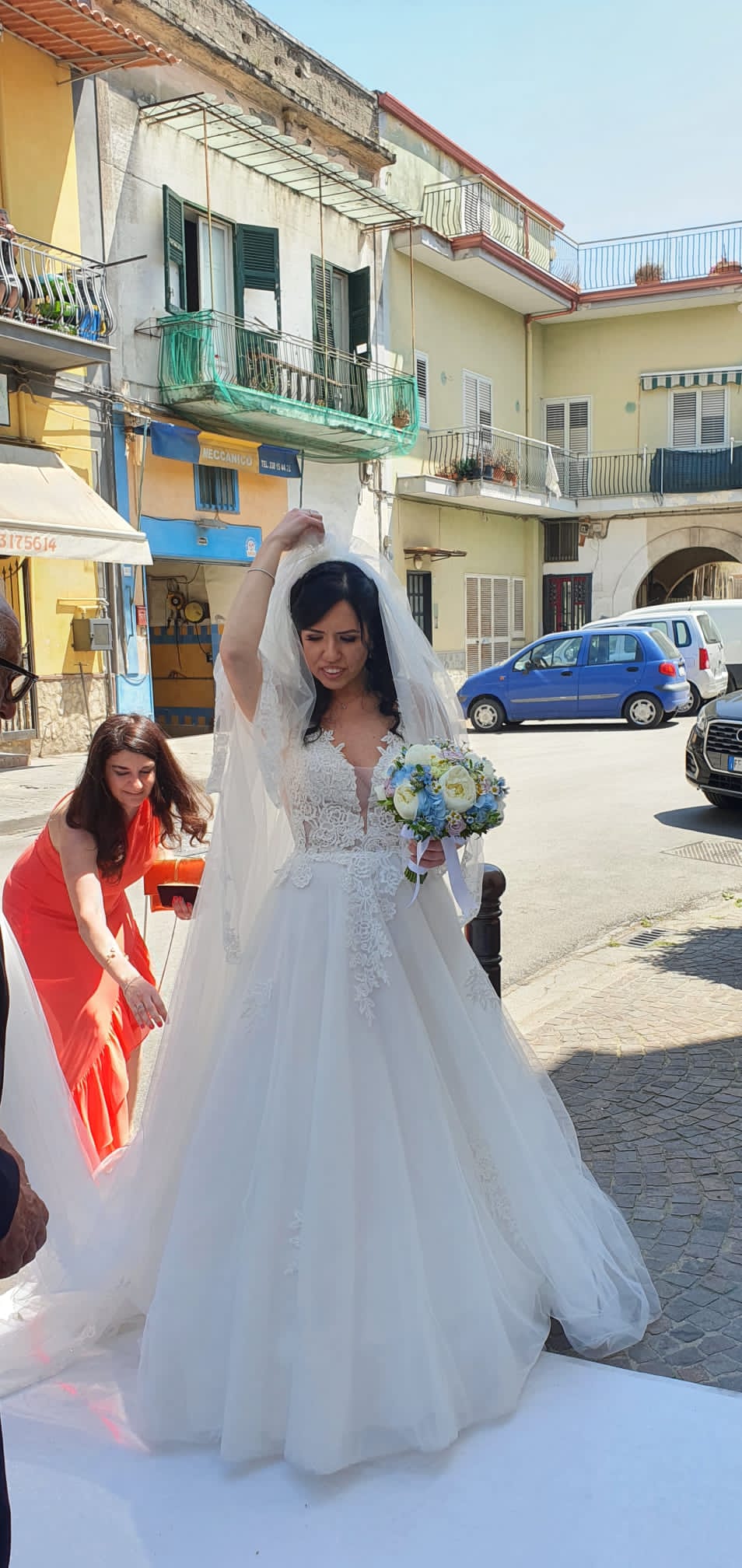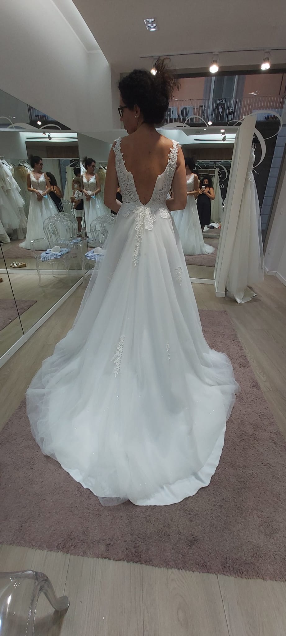 Sul lato posteriore presenta un bellissimo strascico che però non intralcia, morbido e raffinato.