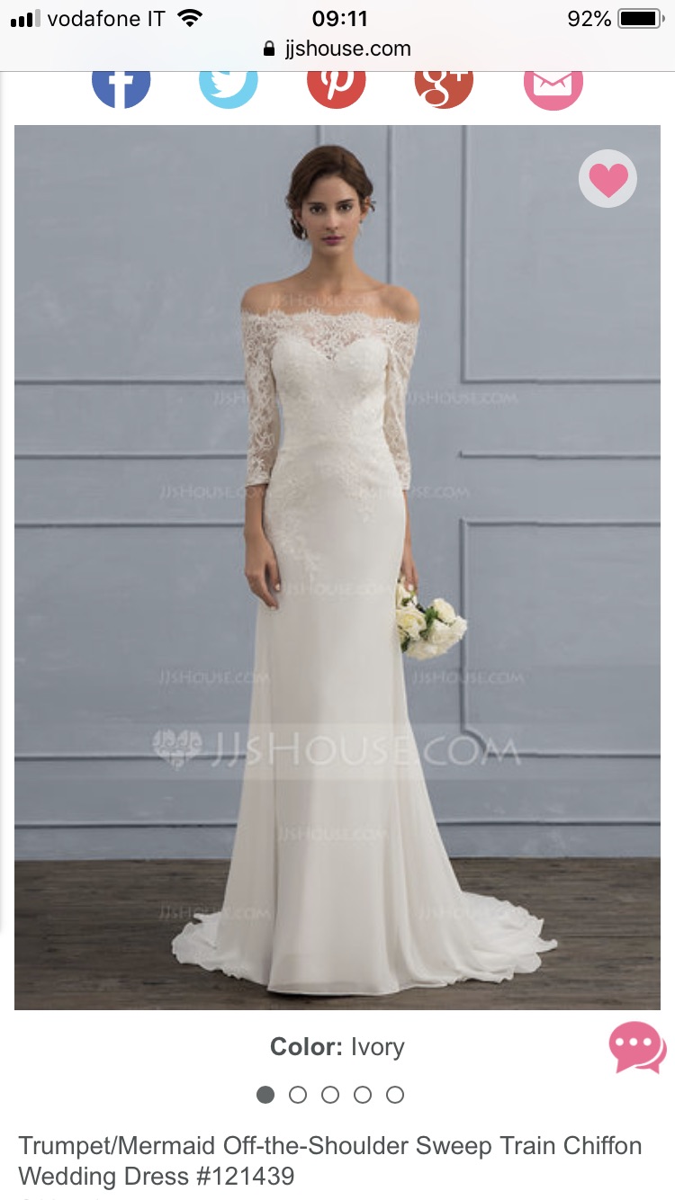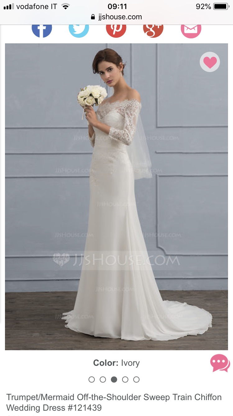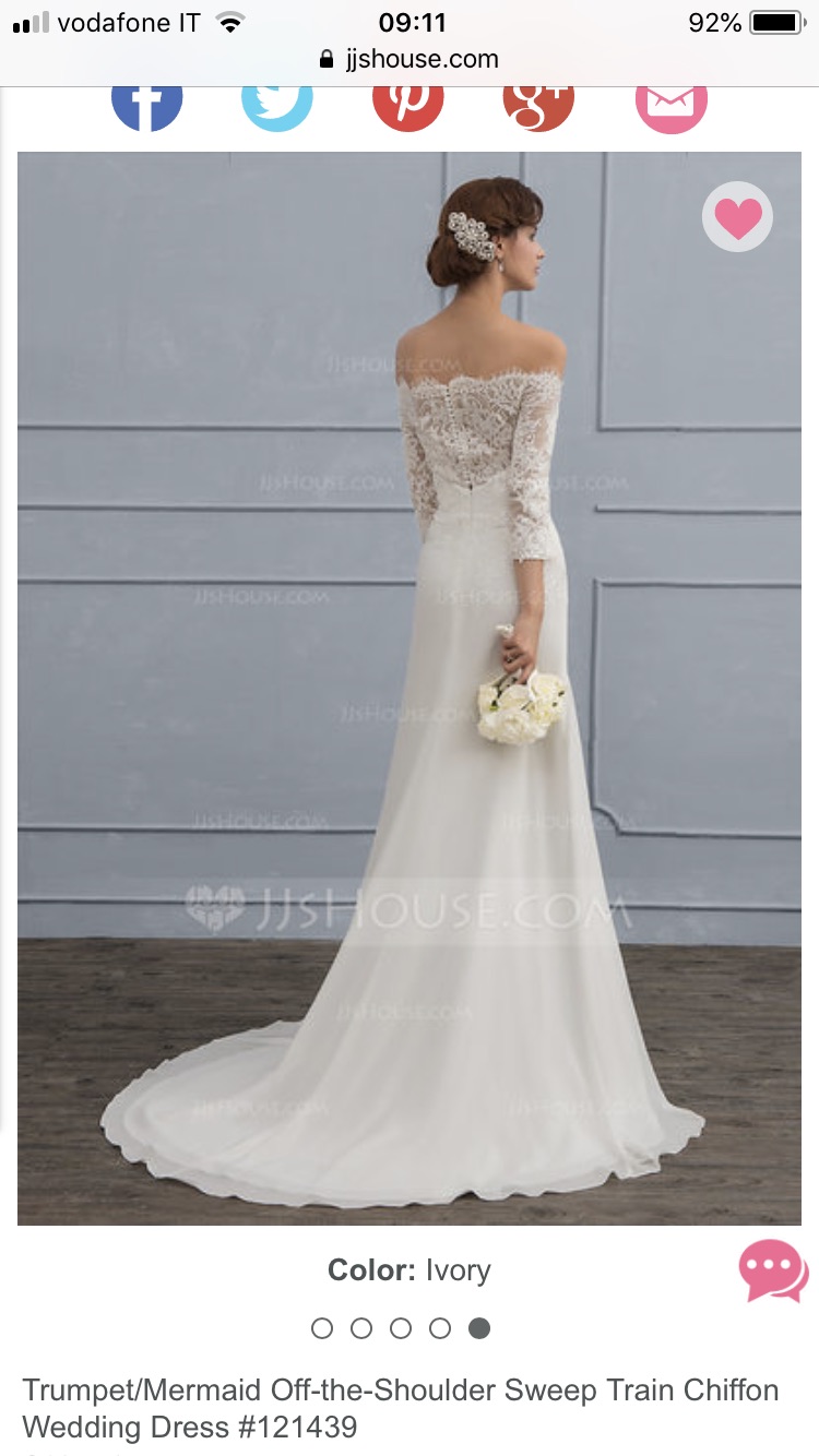 Abito acquistato online sul sito Jjshouse, a causa di un problema di salute con conseguente eccessiva perdita di peso non è stato possibile modificarlo in quanto i tempi erano troppo stretti, quindi ho dovuto acquistare un altro abito fatto sulle attuali misure