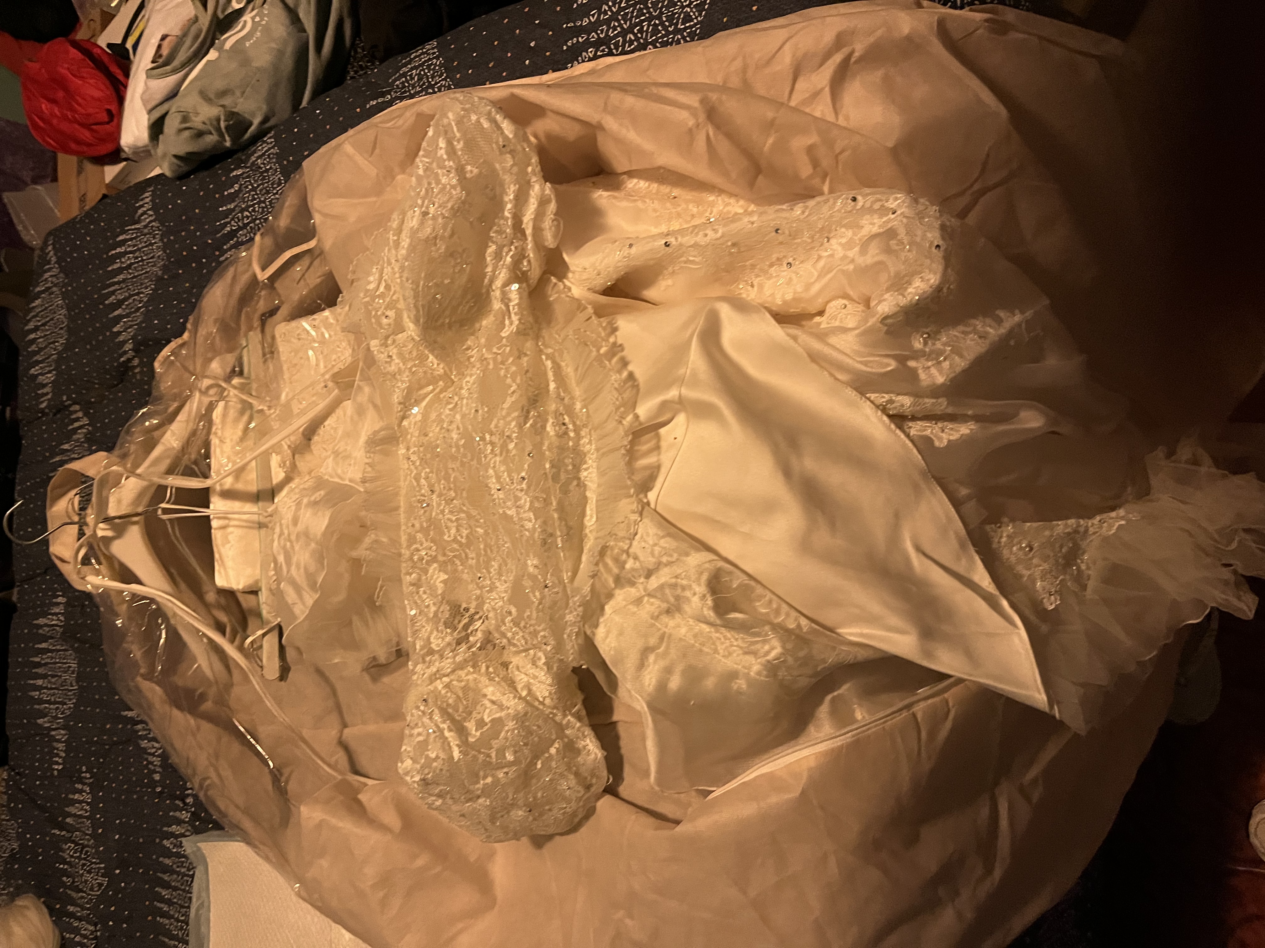 Splendido abito da sposa in perfette condizioni a cui ho fatto aggiungere bottoni automatici all’interno del torace per saldare il reggiseno (porto una sesta) e delle spalline per sostegno che si possono anche far togliere.