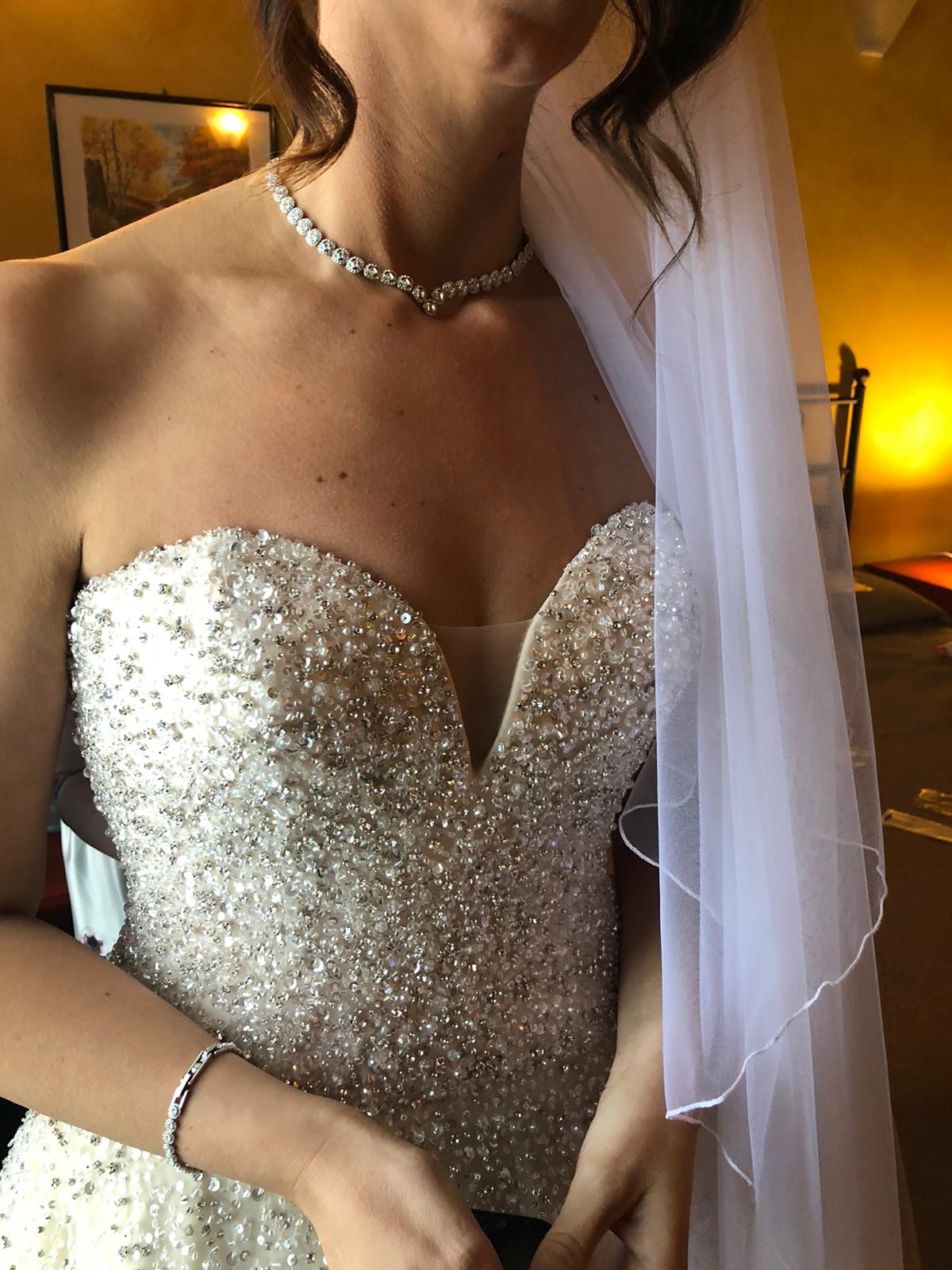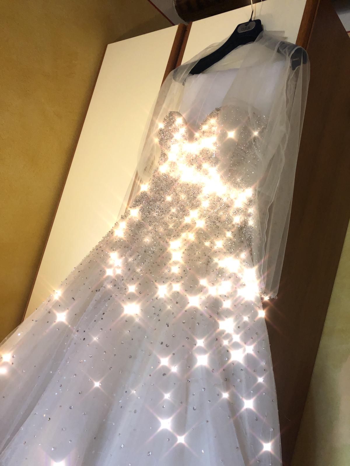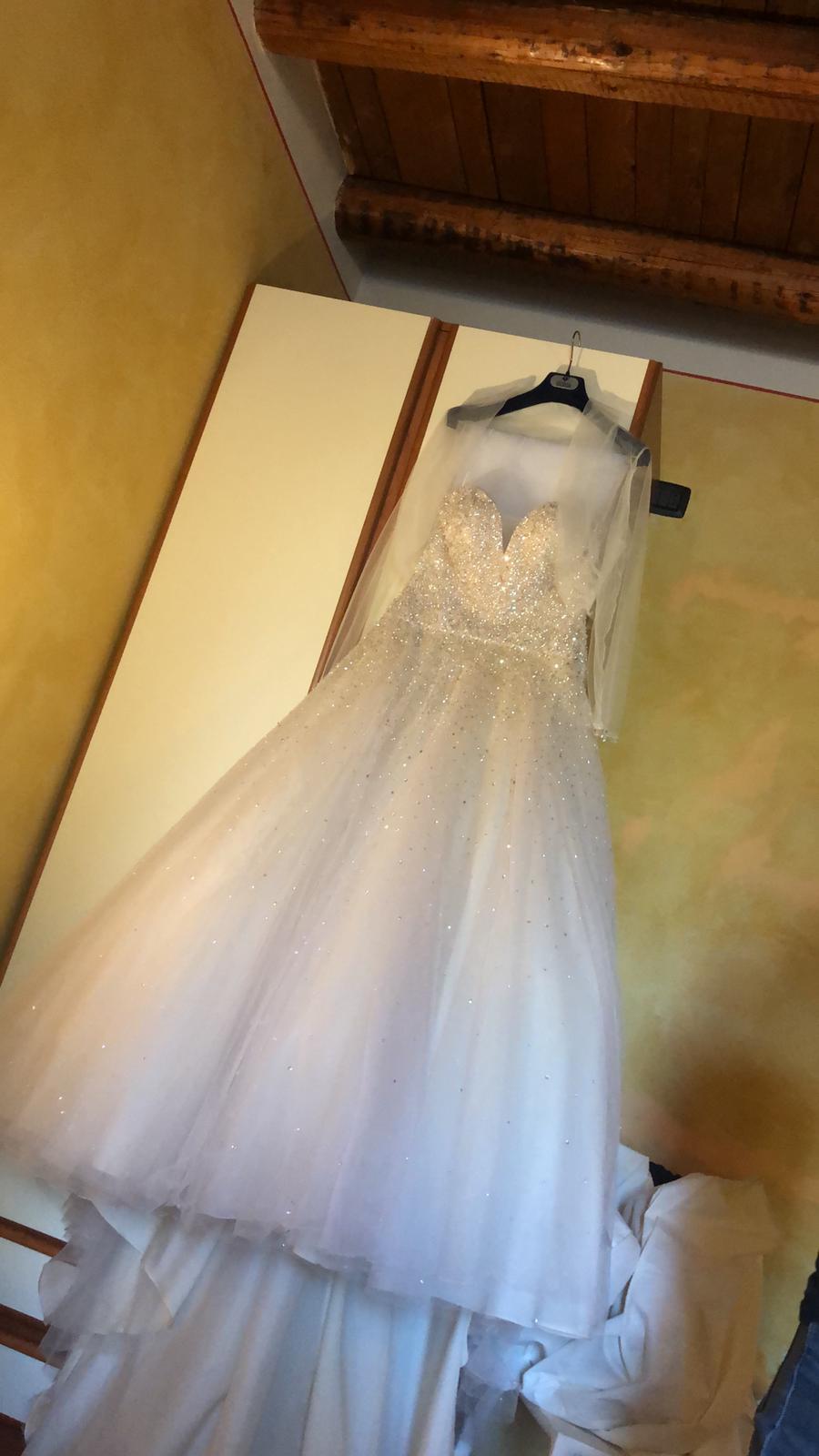 Abito utilizzato lo scorso 5 ottobre. Completo di giacchino e velo entrambi in tulle.