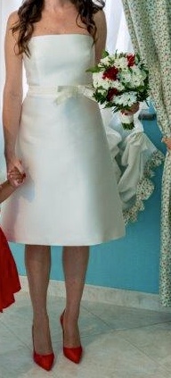 Minidress dalla linea bustier realizzato in doppia duchesse di misto seta. Il design essenziale è impreziosito dalla cintura abbinata in vita, con fiocco couture costruito sul davanti. Scollatura diritta e gonna leggermente svasata. Chiusura con lampo invisibile sul retro.