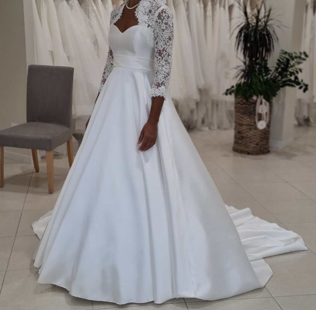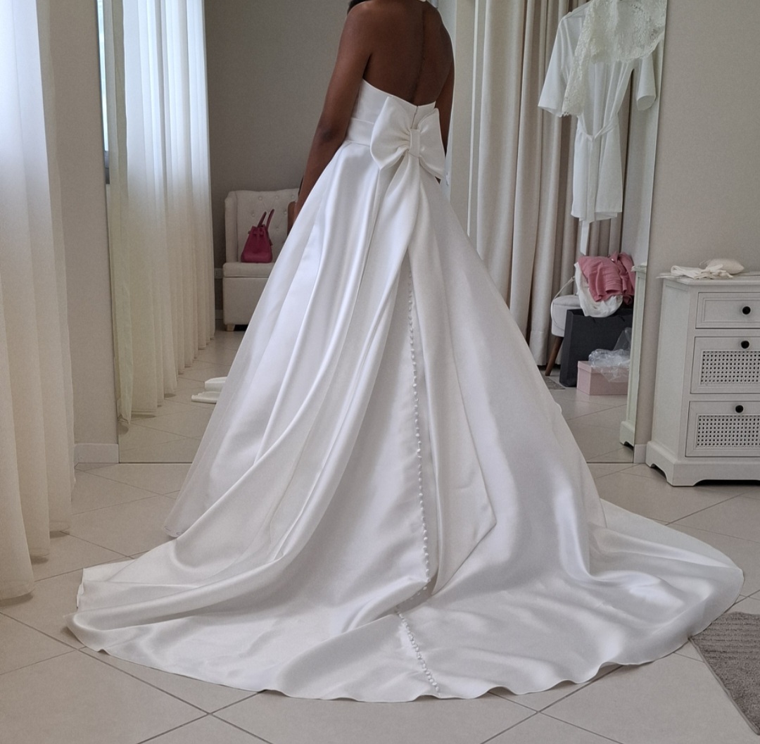 Vendo splendido abito da sposa realizzato in mikado di seta, acquistato a maggio 2024 e indossato una sola volta per un matrimonio da sogno a settembre 2024 in un castello principesco.