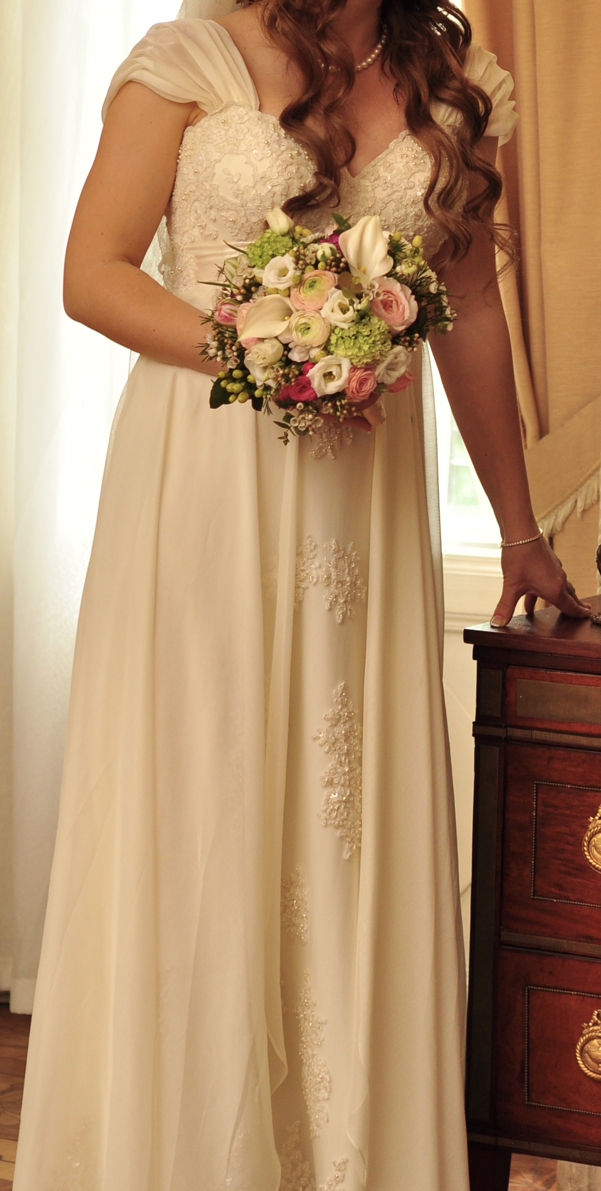 Aderente sul busto, stretto sulle spalle e con una lunghissima gonna realizzata in materiali leggeri. I vestiti a trapezio, detti appunto linea A, sono da sempre considerati un classico intramontabile degli abiti da sposa. La parte superiore è composta da un corpetto aderente, che valorizza il decolté della sposa, mentre la presenza di una gonna lunga maschera pancia, gambe e fianchi, rendendo la figura piu snella.