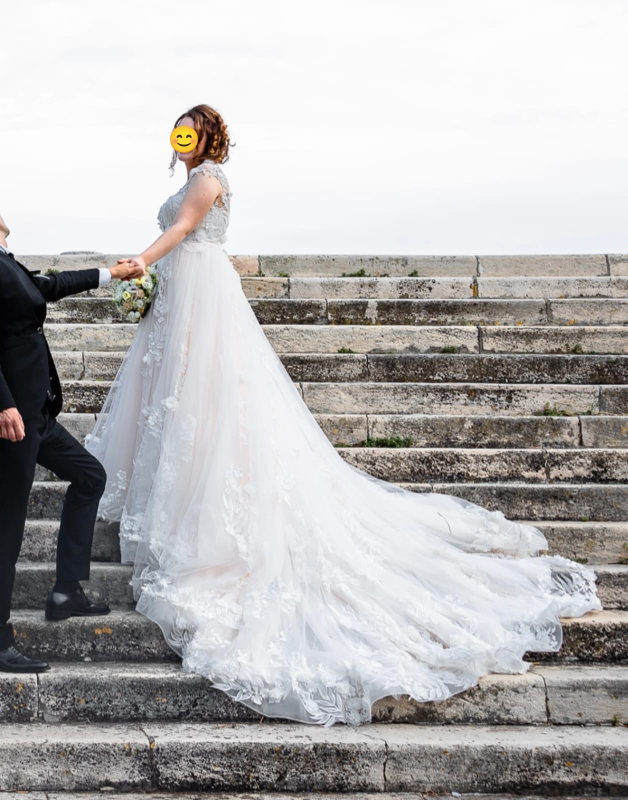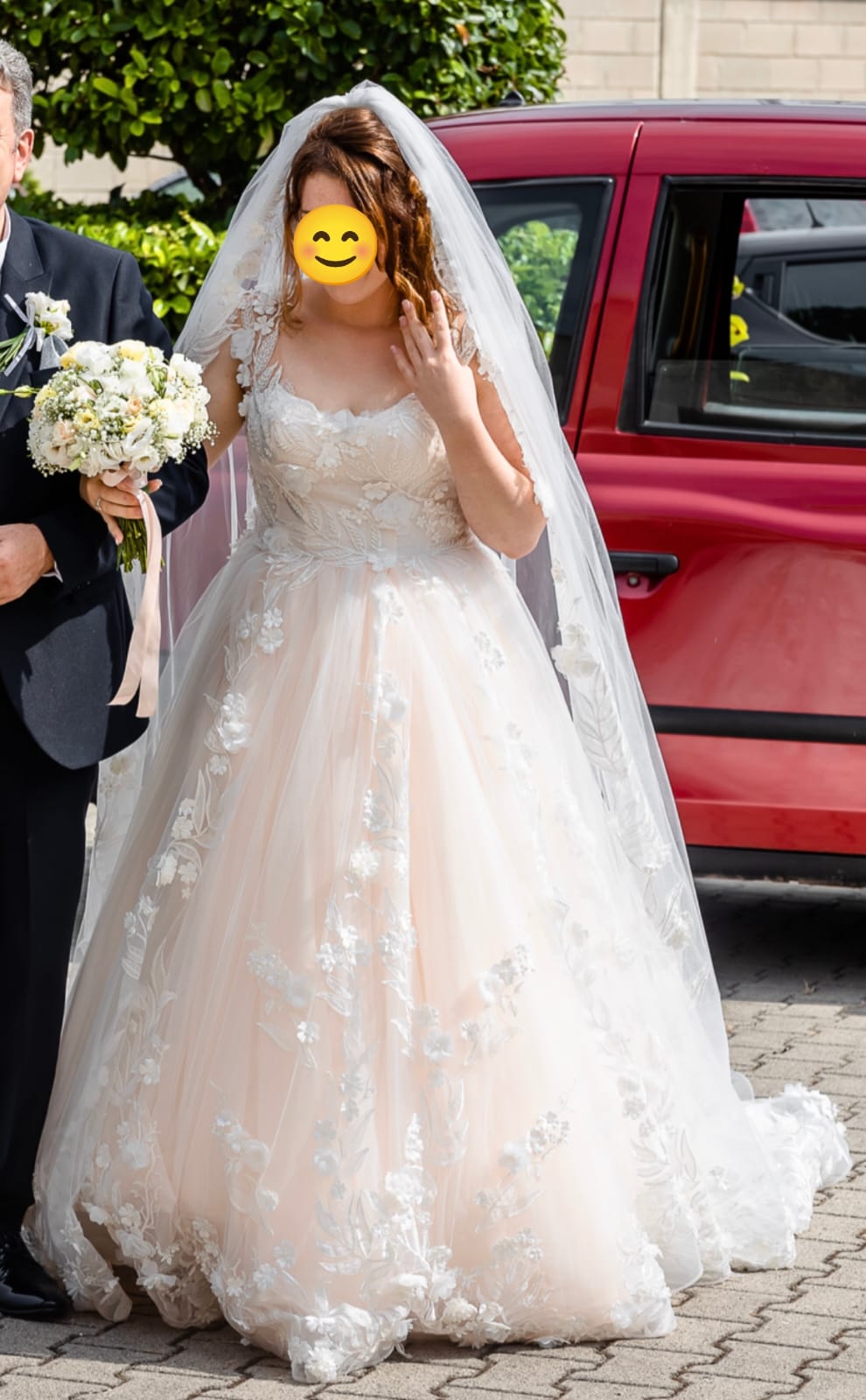 Completo di velo e sottogonna ad un cerchio. Si può rendere più ampio indossando una sottogonna a più cerchi (come nella foto della modella). Io ho scelto una sottogonna ad un cerchio per indossarlo morbido.