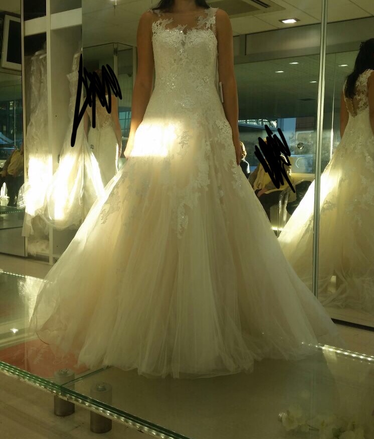Vendo meraviglioso abito da sposa Olwen Pronovias, nuovo mai usato ancora in atelier. In stile principessa, dalla linea a redingote. Romantico modello con scollatura a cuore ad illusione che si caratterizza per l’unione di pizzo, ricami in filo e strass, tessuti e particolari creano dei motivi floreali su tutta la figura. Colore champagne. Taglia 42/44.