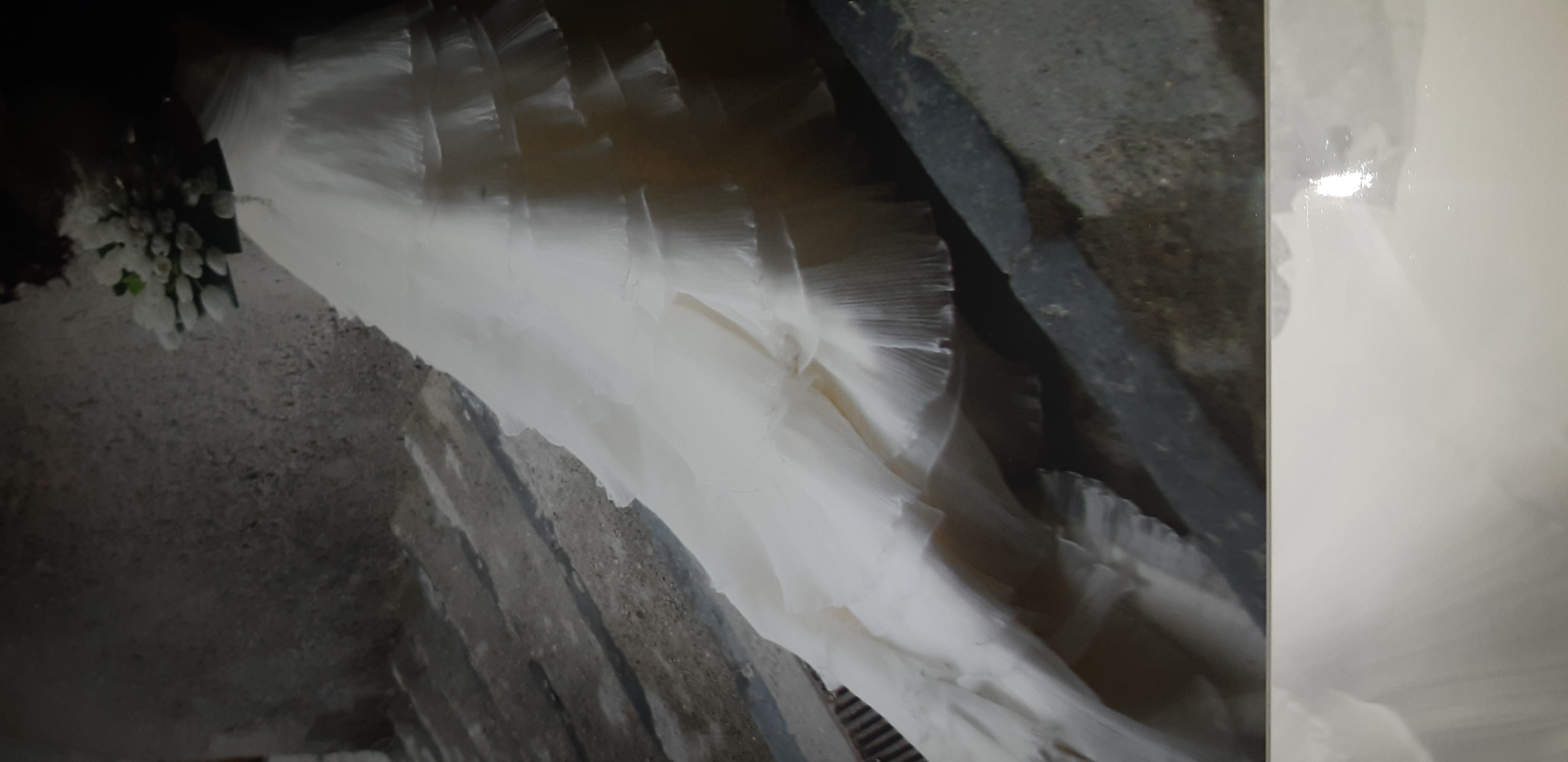 Completo di corpetto, lavorato in pizzo da mettere nella prima parte della cerimonia o in serata.