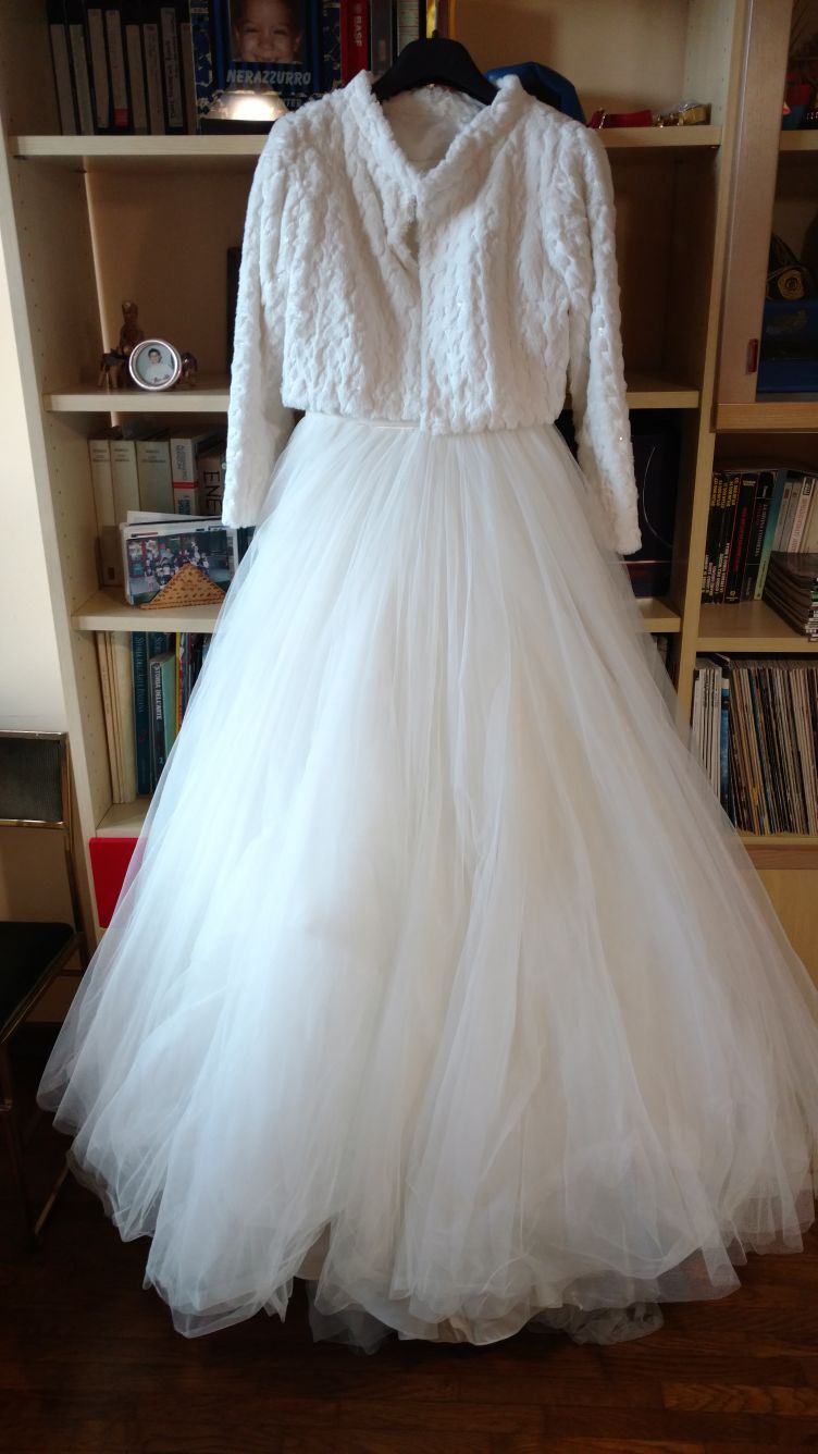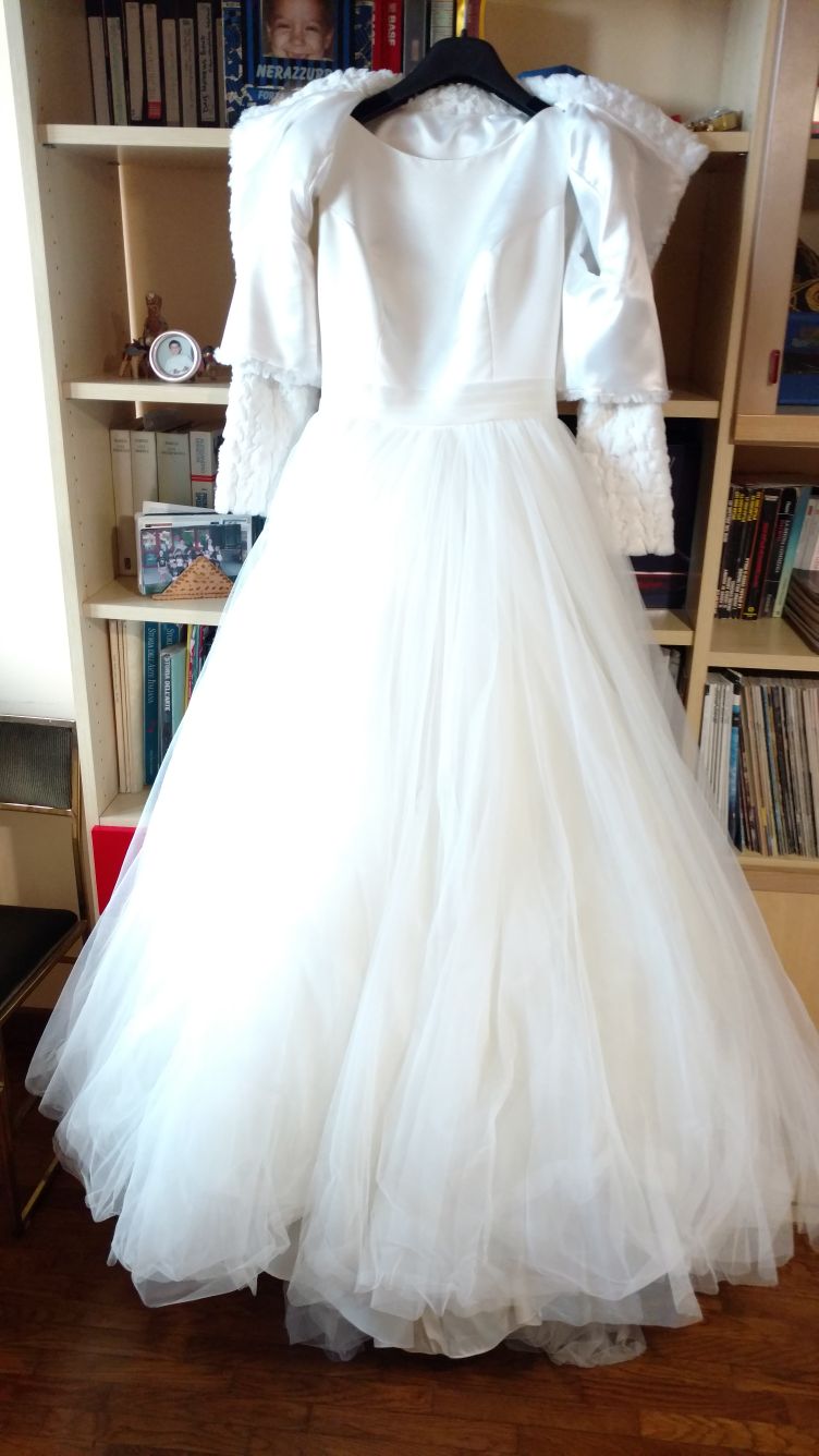 Regalo velo 1,5 metri circa con semplice bordura di raso pagato 100 e sottogonna pagata 80.