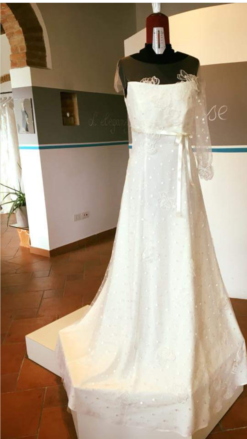 a differenza della prima imagine originale ho accorciato la maniche al gomito . Ottime rifiniture in raso e toulle con carrè in trasparenza, morbido e raffinato con dettagli che fanno la differenza.Comprato da atelier sartoriale.