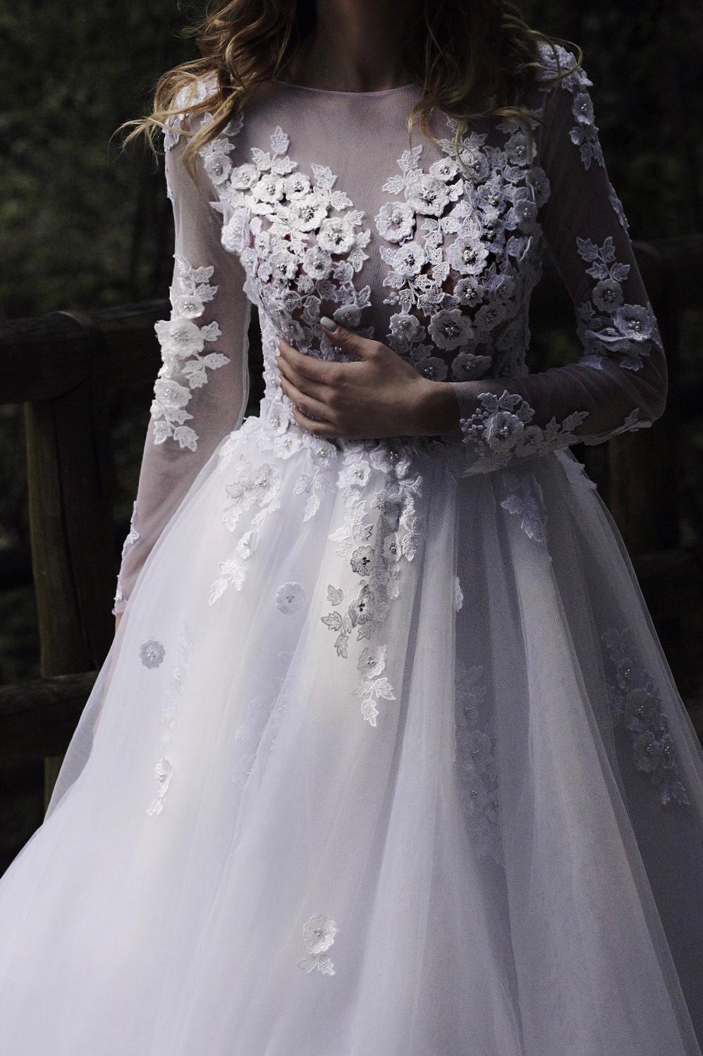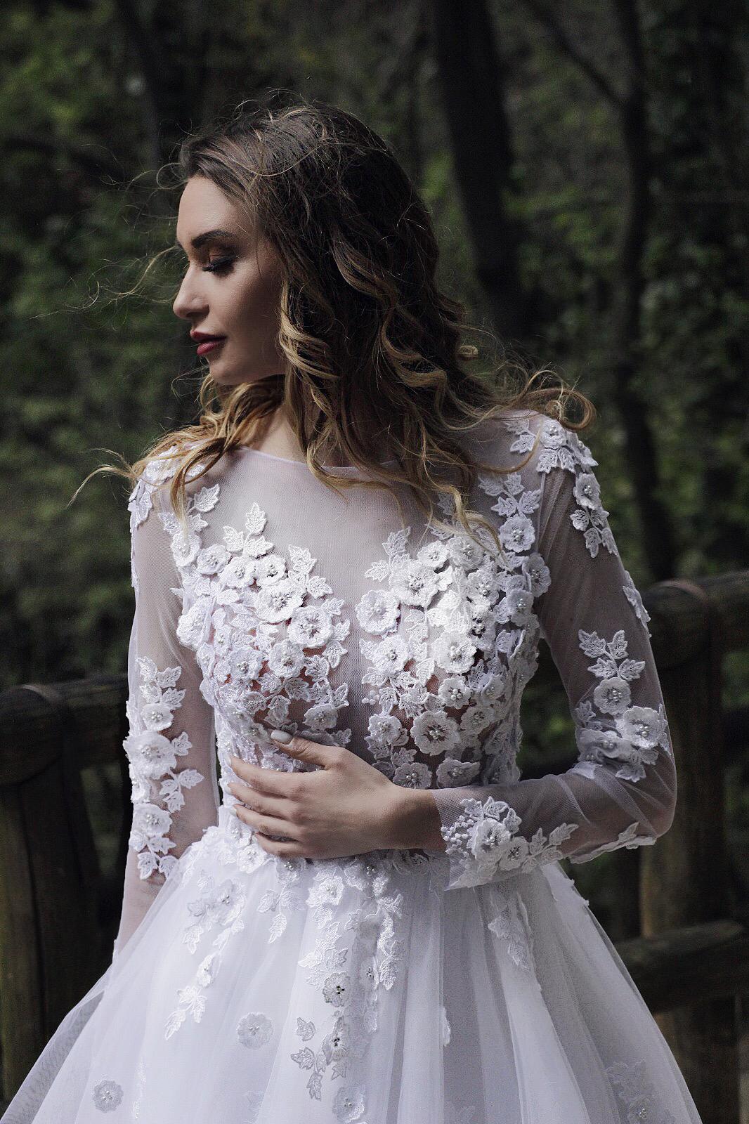 Abito da sposa taglia 42 bianco bellissimo pizzo fatto tutto a mano collezione 2019 di Fedus Lidia..
