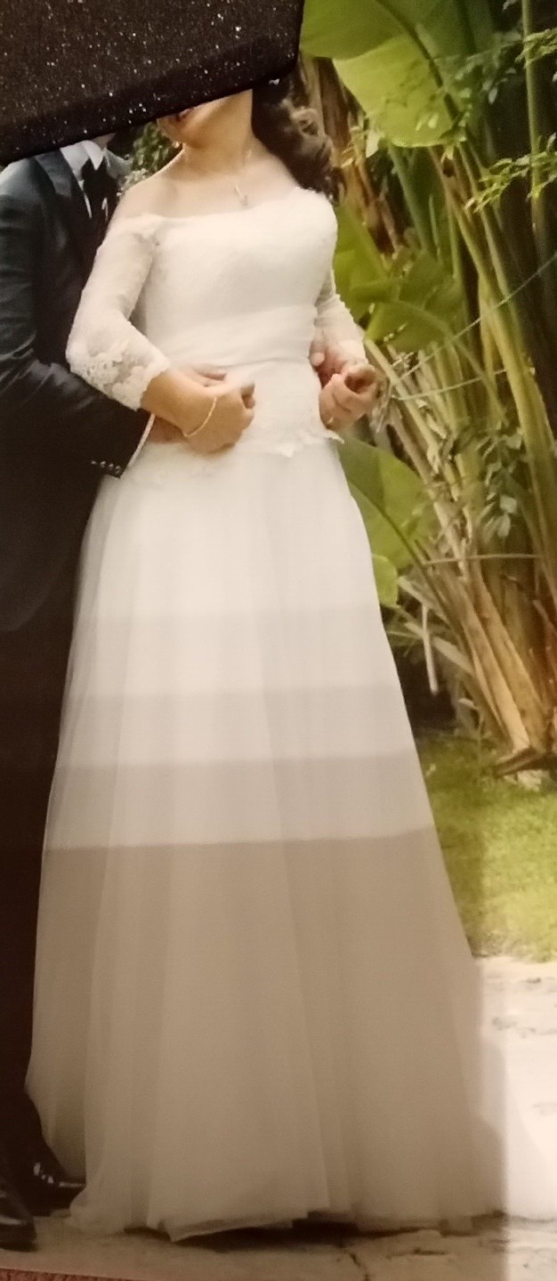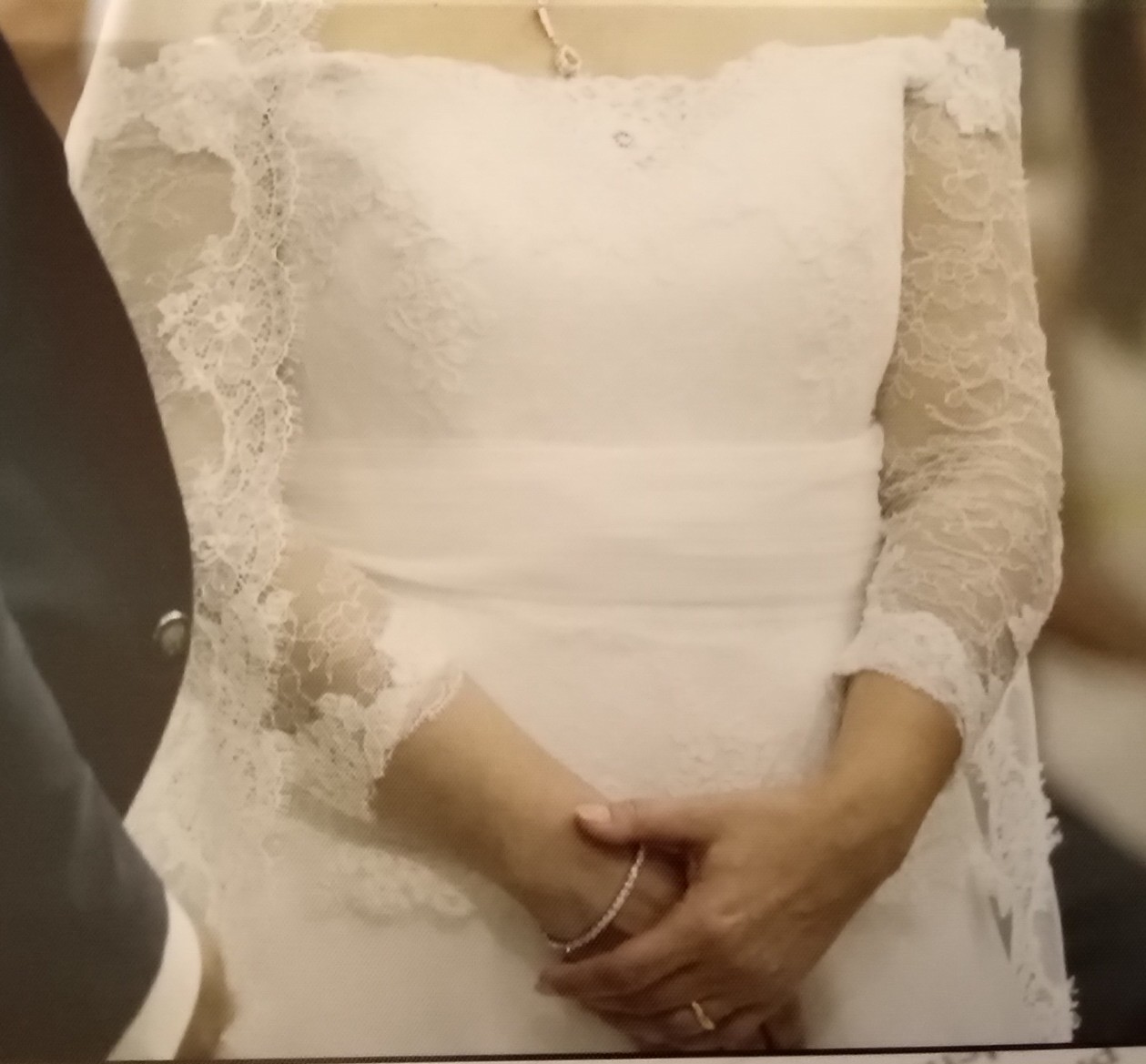Insieme all’abito e’ compreso il velo, i guanti e l’acconciatura per i capelli, porta anelli. Per informazioni, foto e misure dettagliate non esitate a contattarmi, sono a disposizione.