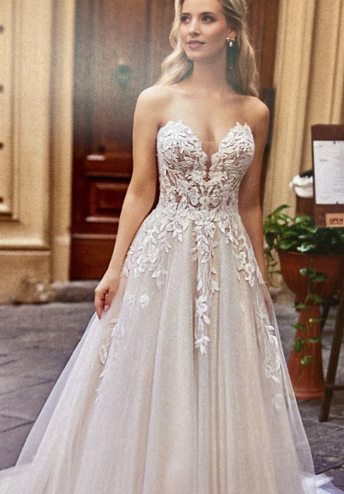 Modello molto femminile e romantico, perfetto per chi desidera un abito importante ma delicato allo stesso tempo.