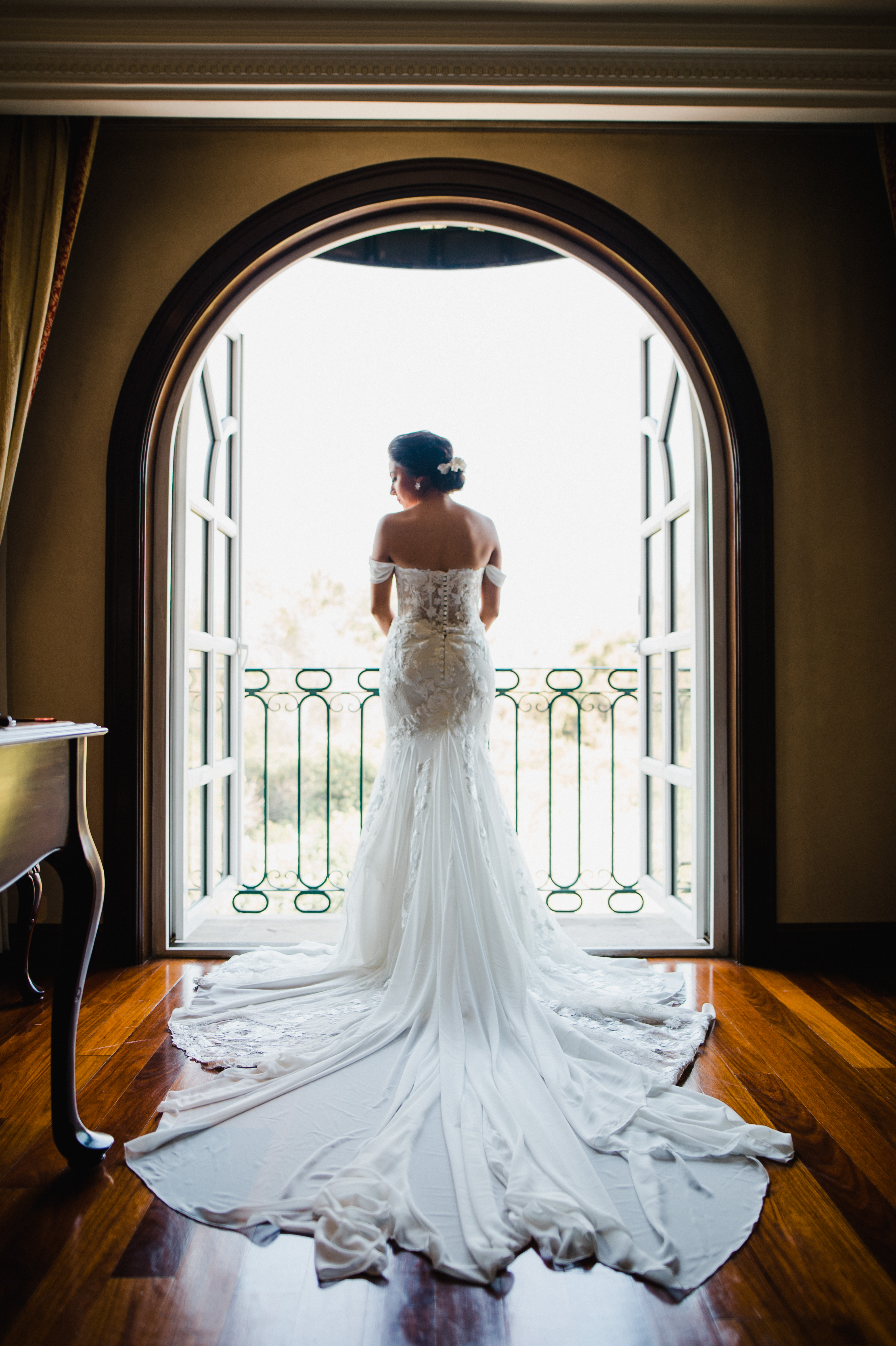 Te regalo el can can (lo que debes llevar abajo en lugar de crinolina) que ese lo venden aparte y el velo que usé es uno cortito para que luzca el vestido. El vestido es de encaje de seda.