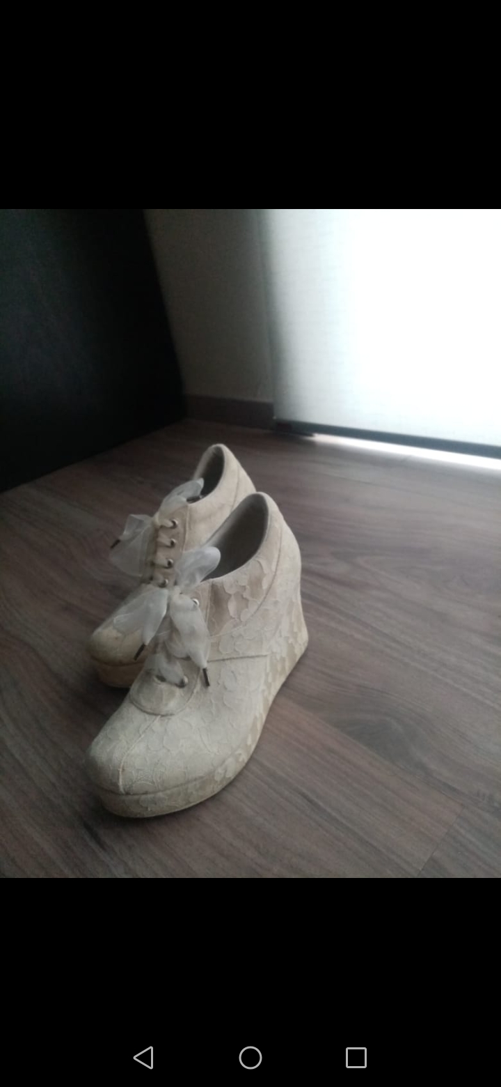 En la compra del vestido te regalo los tenis de novia del número 4 (son de la misma tela) y podemos ver el precio de la mantilla, el cual sería preferencial si te llevas el vestido. La mantilla, también de encaje en la orilla, fue usada únicamente en la misa por lo que está intacta.