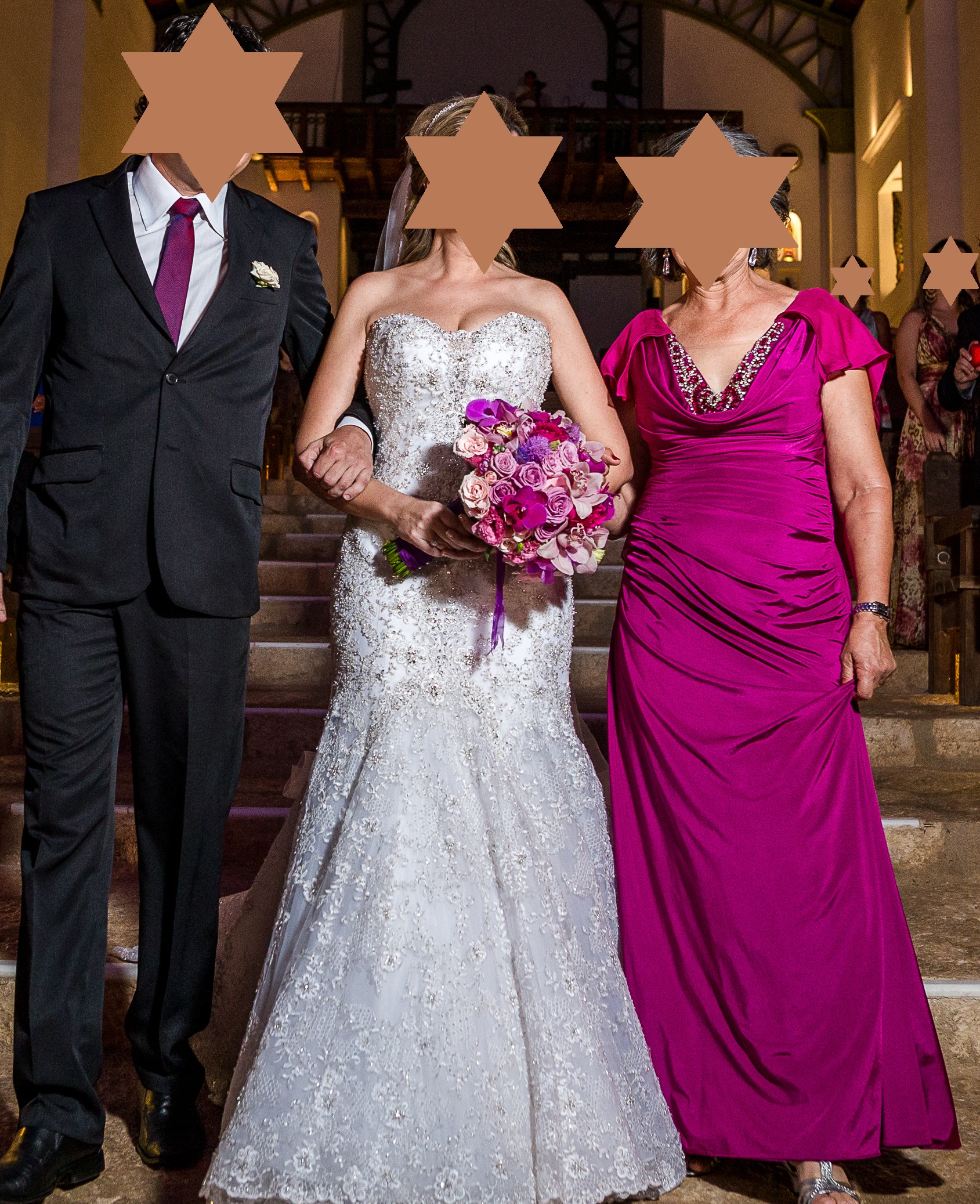 Además de comprar el vestido original con 60% de descuento, regalaré la mantilla bordada en encaje francés con cristales + los sapatos blancos número 23.5 también usados solo una vez por un par de horas.