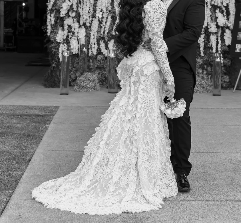Este vestido de novia es un diseño exclusivo único, no hay otro igual. Diseñado por Benito santos, en la ciudad de Guadalajara Jalisco, Mexico. Es tela exclusiva francesa, un encaje único exclusivo. El vestido tiene un strech sin igual, que se adapta a tu medida, no es dura la tela, y podrás moverte sin problema y bailar toda la noche, además su medida de cola es ideal… Nada exagerado y nada común, ni aburrido, elegante y original.