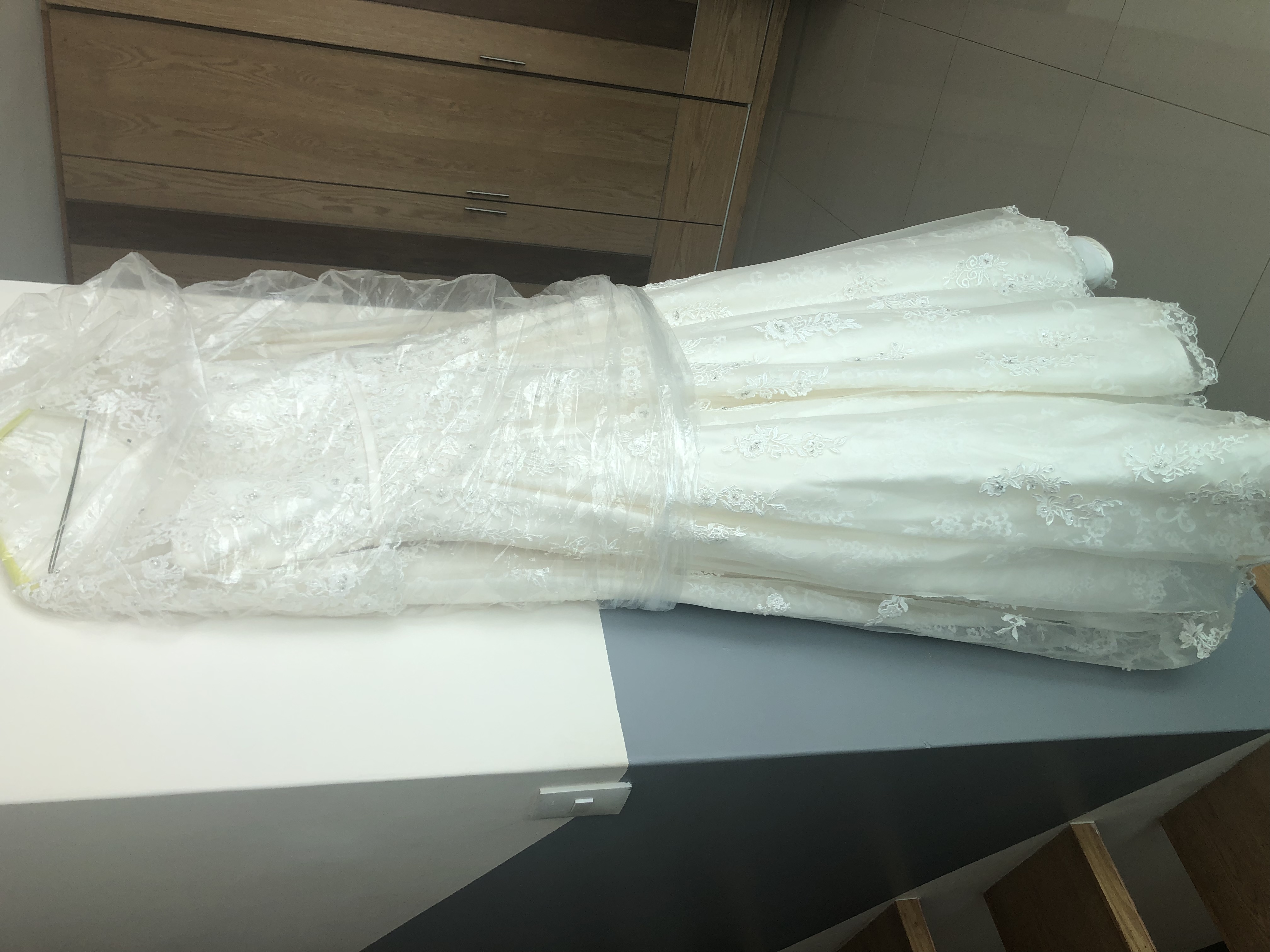 Se uso una sola vez y está limpio de tintorería especial , listo para usarse !