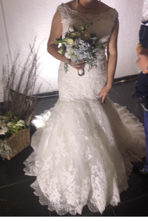 Hermoso vestido de sirena con cola con opción a acortarse durante el evento tiene aplicaciones de bordado muy bien conservado