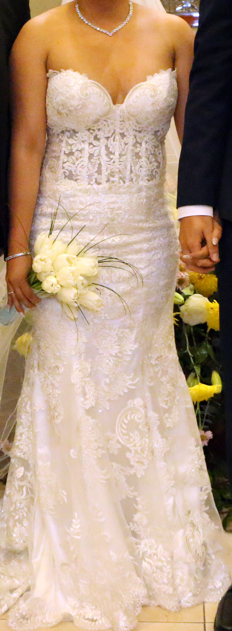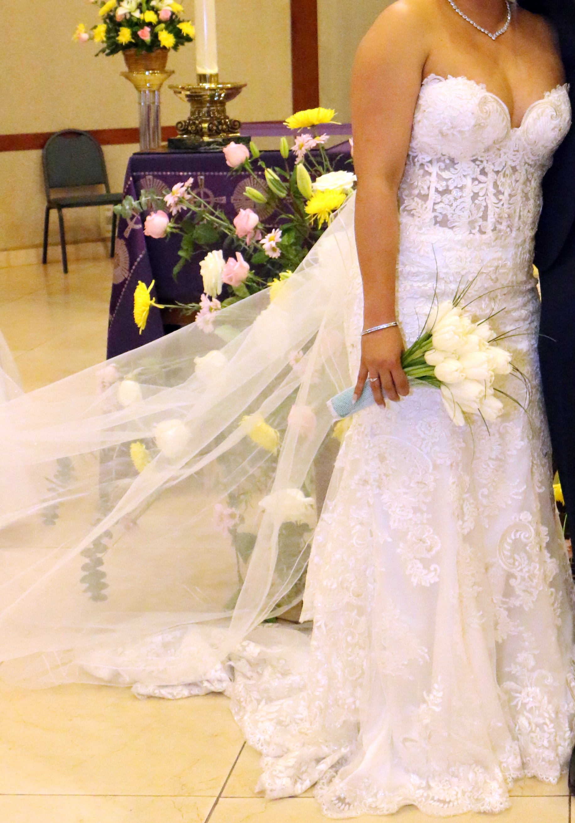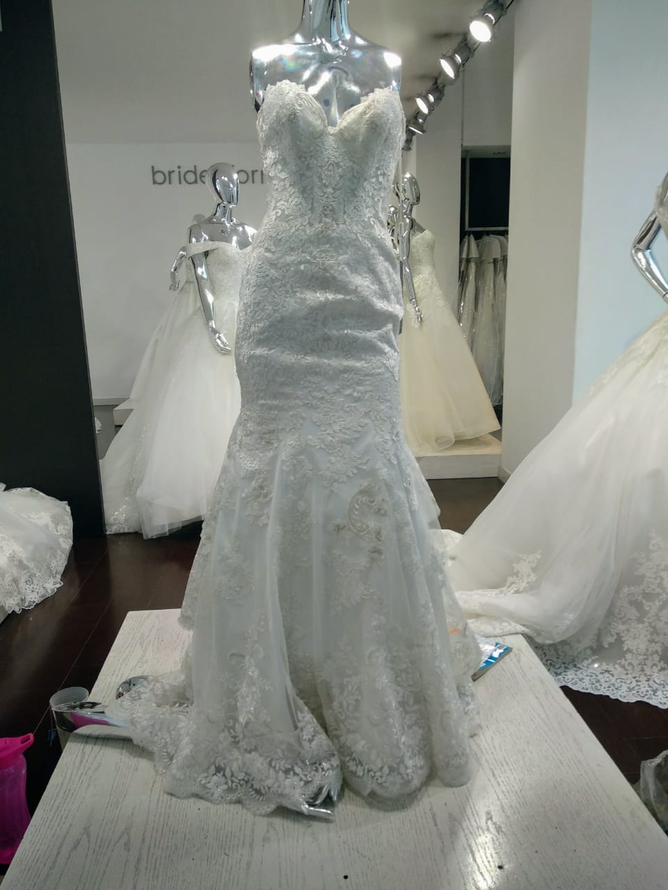 Hermoso vestido de novia, ajustado de encaje, corte sirena, usado el 15 de diciembre de 2018.
