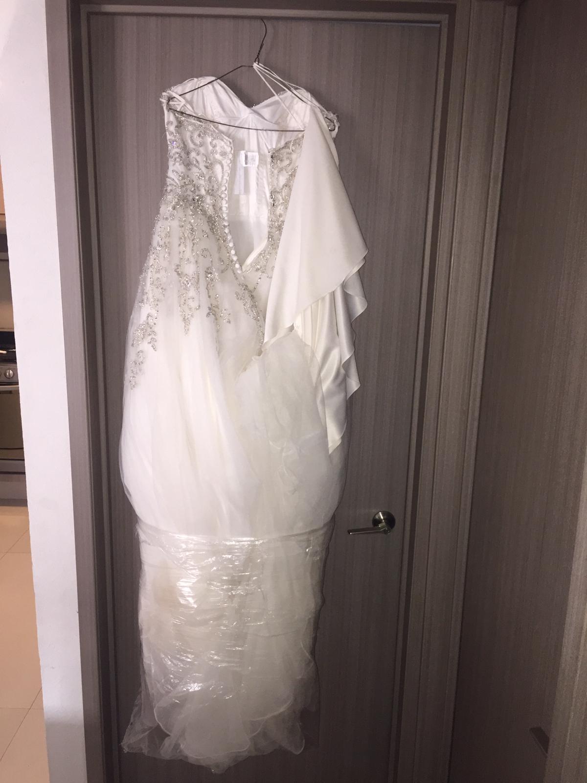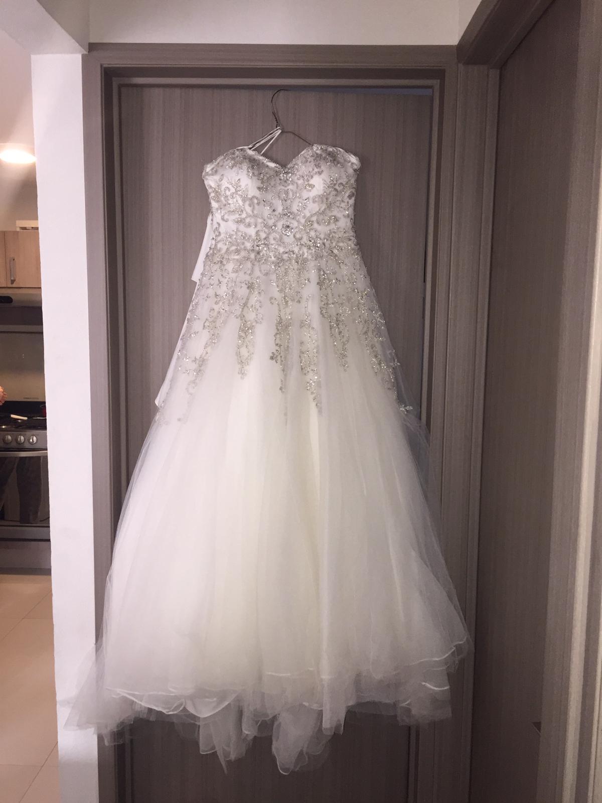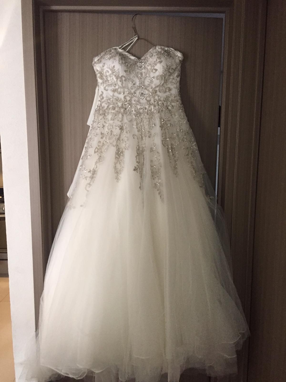 REMATE :) Hermoso Vestido de Novia , color Ivory, Talla 6-8, con hermosa pedrería en la parte superior del vestido. Tiene una rasgadura en una de las capas del vestido, NO es en la parte principal, pero de fácil arreglo. Es por esa razón que se remata.