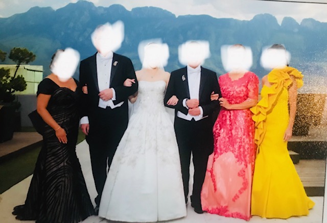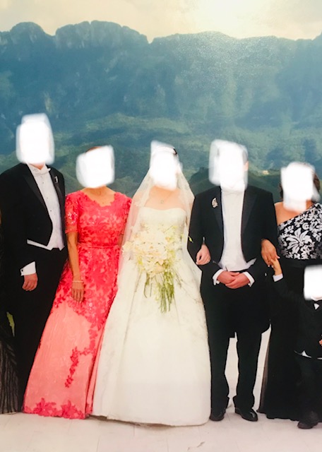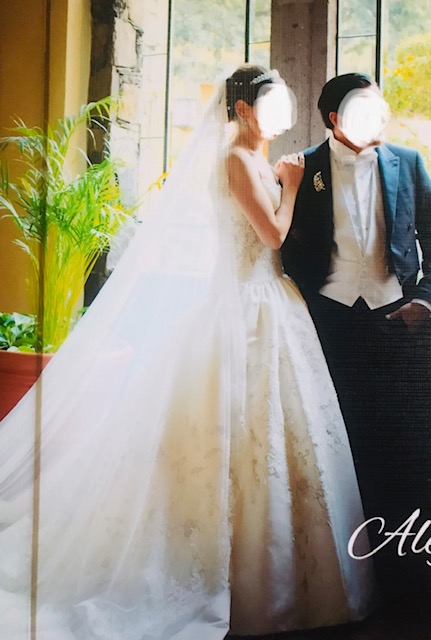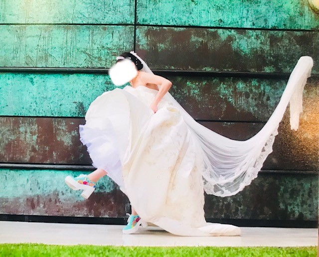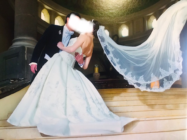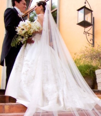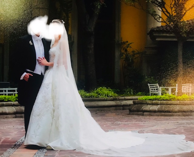 De la espalda a la cola del vestido mide alrededor de 2.30 metros
