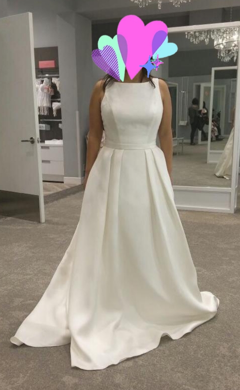 Se usó en el verano 2018. Es el modelo 8000931 de David Bridal. En perfecto estado, sin manchas o rasgaduras. Incluye el estuche original para guardarlo.