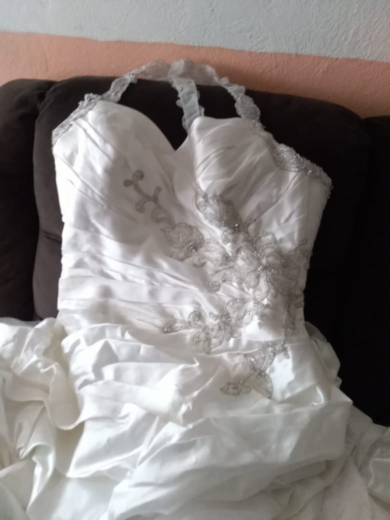 Vestido ivory talla 10 solo se uso 1 vez, viene con criolina velo y ramo urge venta