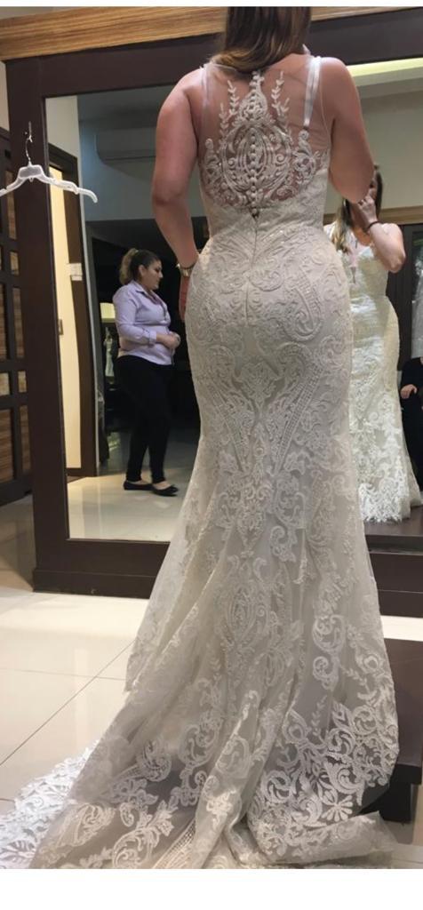 Hermoso vestido en excelentes condiciones ,muy bien cuidado, totalmente de encaje bordado con pedrería.