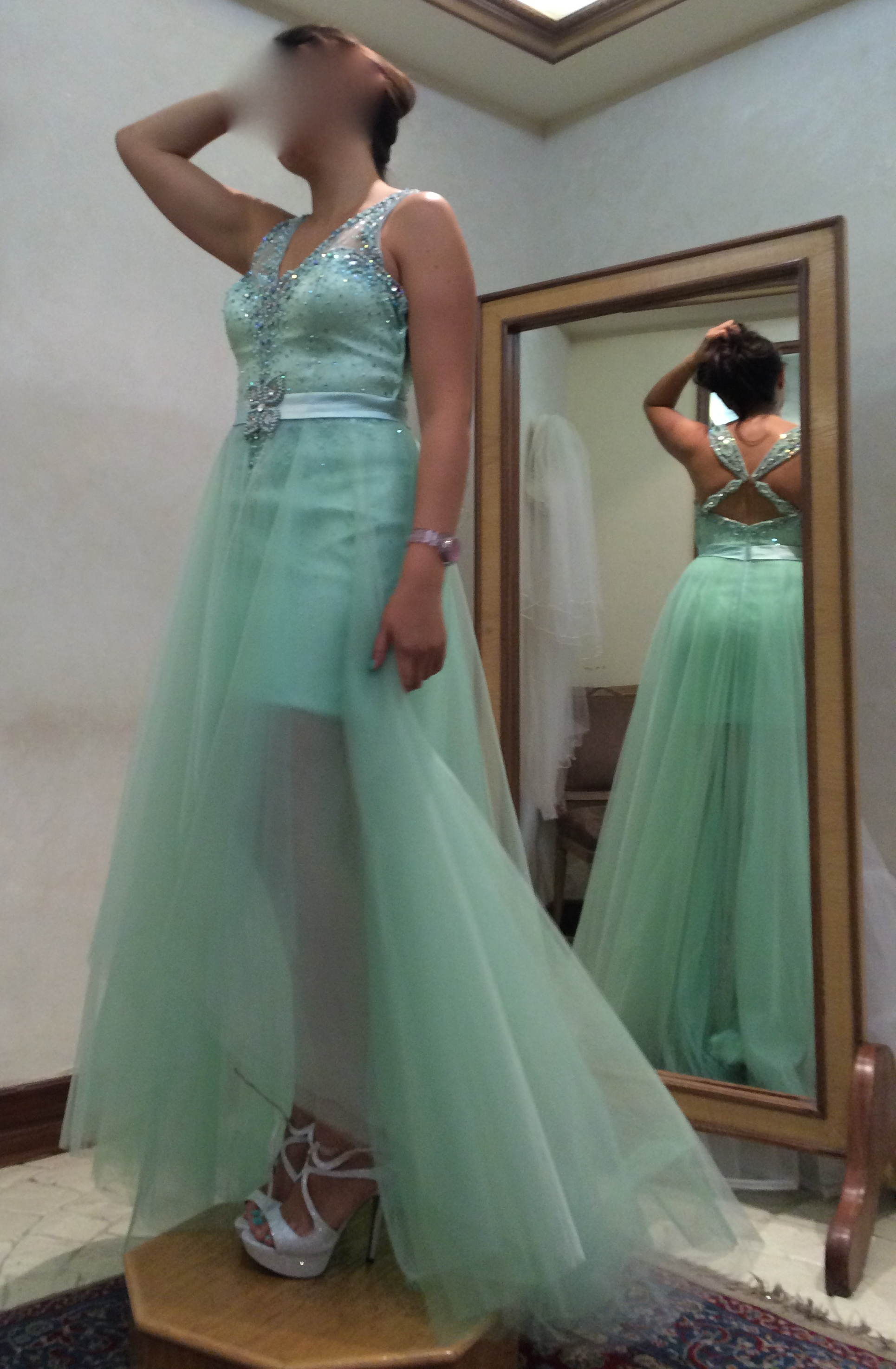Este hermoso vestido solo fue utilizado una vez para la fiesta de graduación y si quieres un modelo exclusivo, original y diferente este vestido es la opción ideal, es un diseño totalmente diferente a los vestidos convencionales.