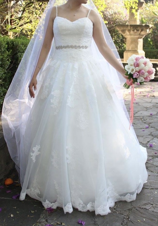 Hermoso vestido de novia con detalles únicos, utilizado solo una vez y guardado por tintorería profesional al vacío, lo que lo mantiene casi como nuevo.